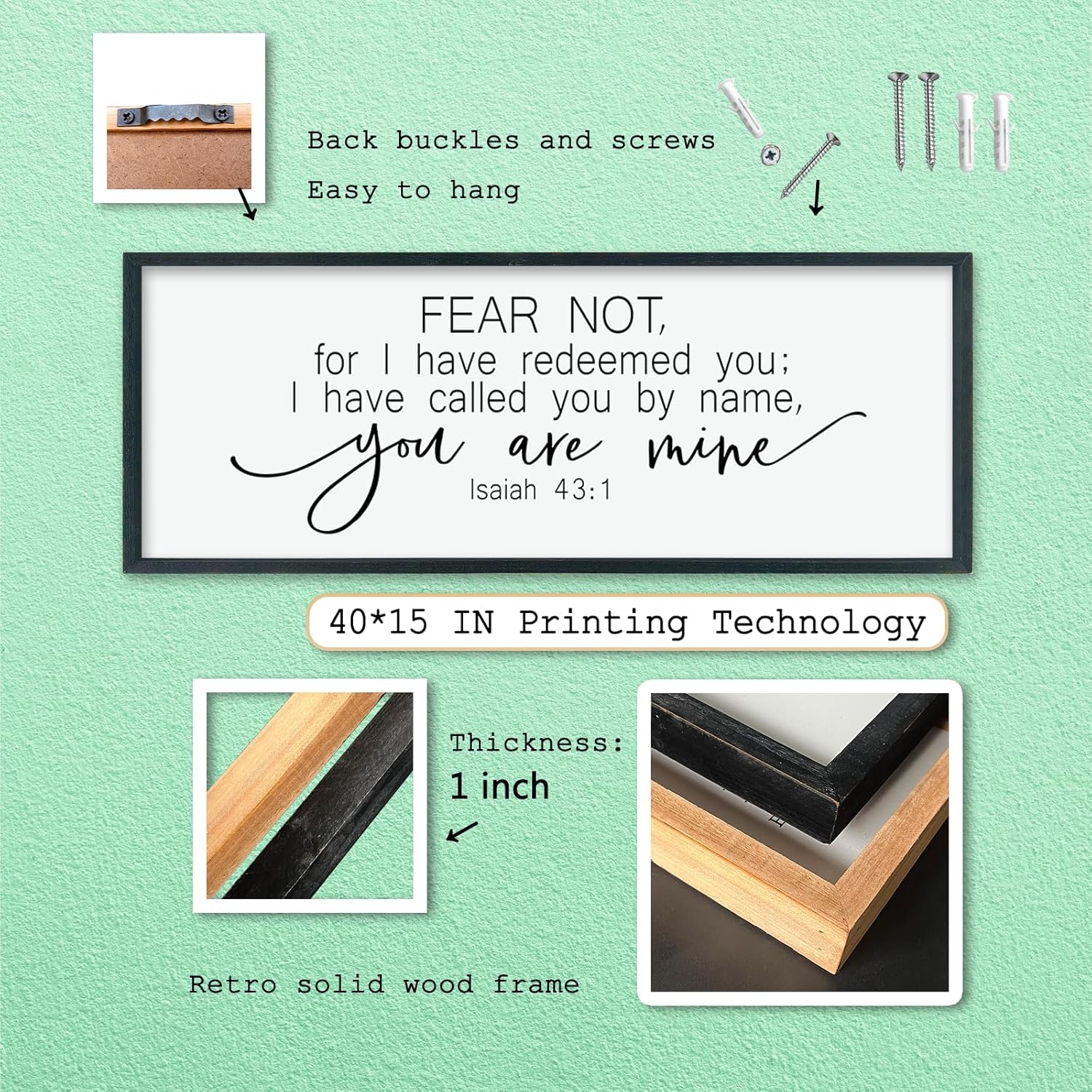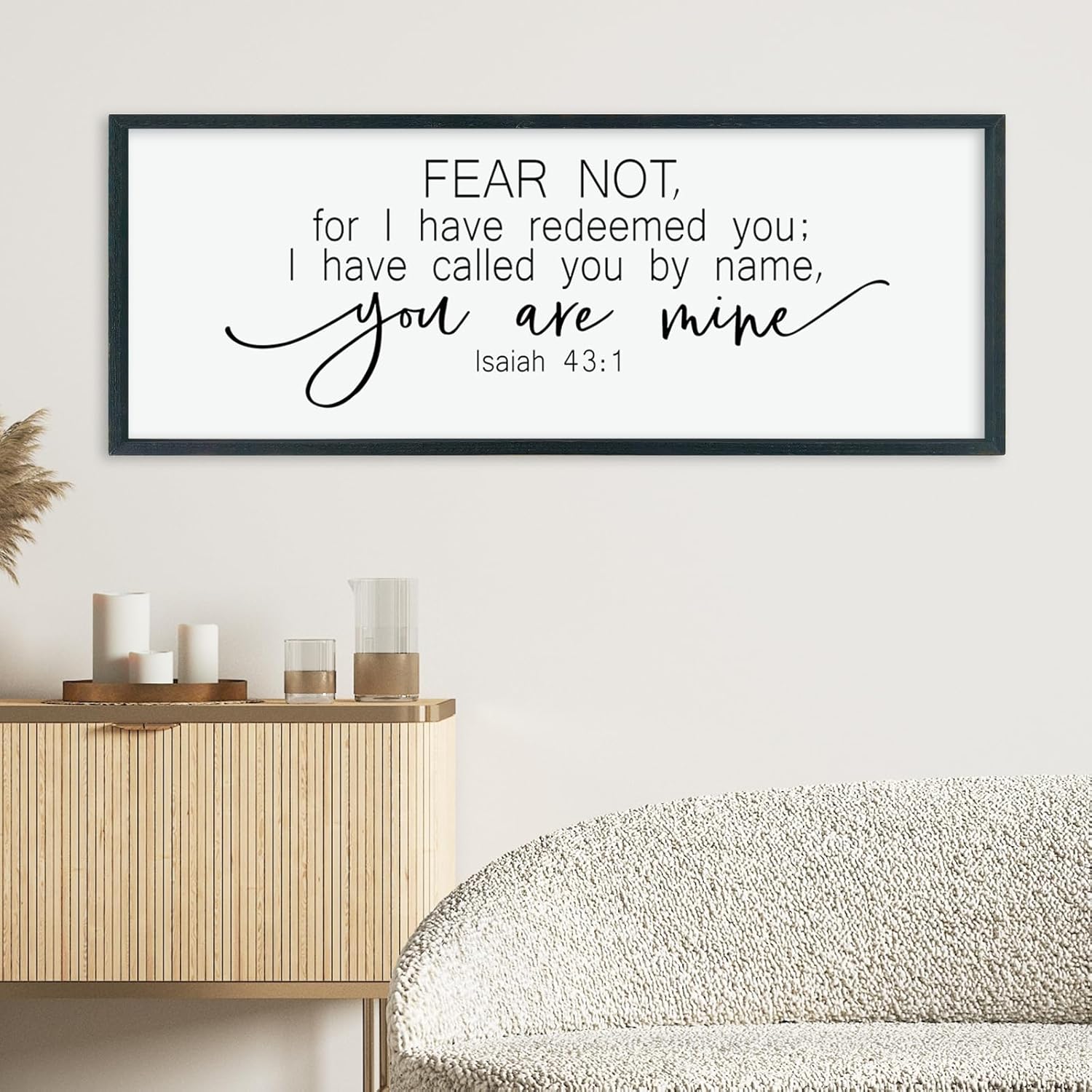 LuZhiQiang Fear Not for I Have Redeemed You Wall Decor Art 40"×15" Isaiah 43:1 Bible Verse Sign Christian Scripture Large Wood Framed Wall Hanging (Black)