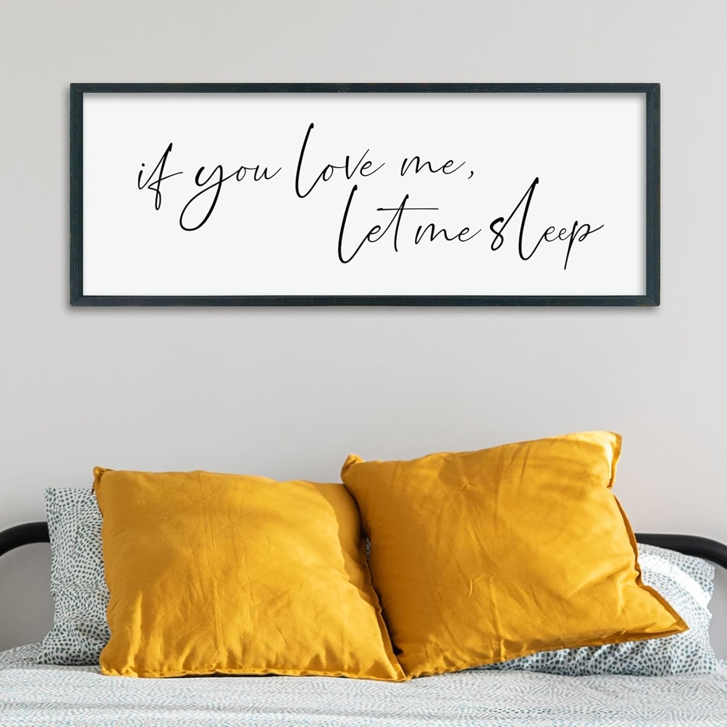 LuZhiQiang If You Love Me Let Me Sleep Wall Decor Art 40"×15" Bedroom Above Bed Sign Large Wood Framed Wall Hanging (Black)