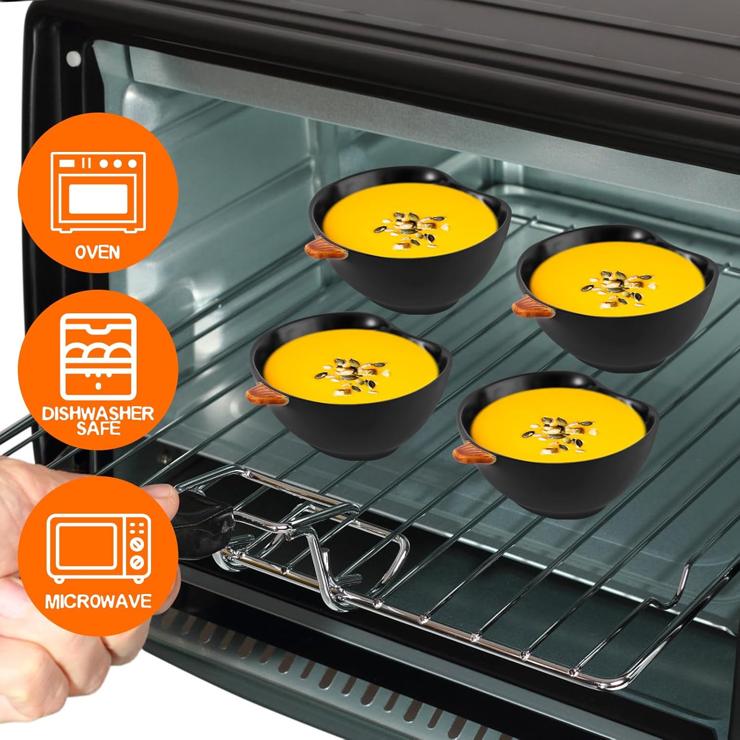 - Safety material:the pumpkin bowls are made of top grade ceramic at a high temperature. Unlike plastic or wooden bowls, porcelain won't absorb odor or bacteria. These mini bowls are lead-free & cadmium free, and harmless. You can pop these pumpkin sauce cups in the microwave and wash up nicely in the dishwasher. They stack neatly and less cabinet space taken. Oven safe (Up to 572°F/300°C)
