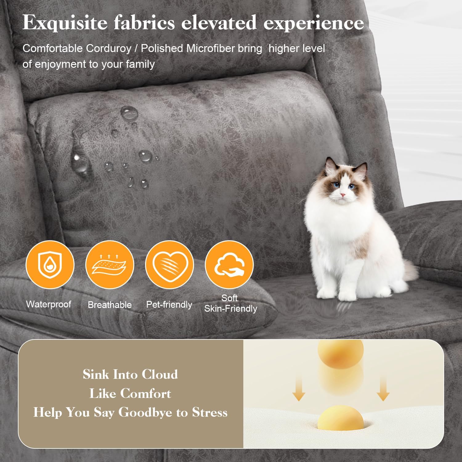 - Manual Recliner: The manual tilt design of the manual recliner chair eliminates the need to find a controller. The pull tab on the outside of the seat is within reach and very easy to use. The manual control eliminates the need to place the chair near a socket. There is no restriction on the use of the chair, and the failure rate is also lower
