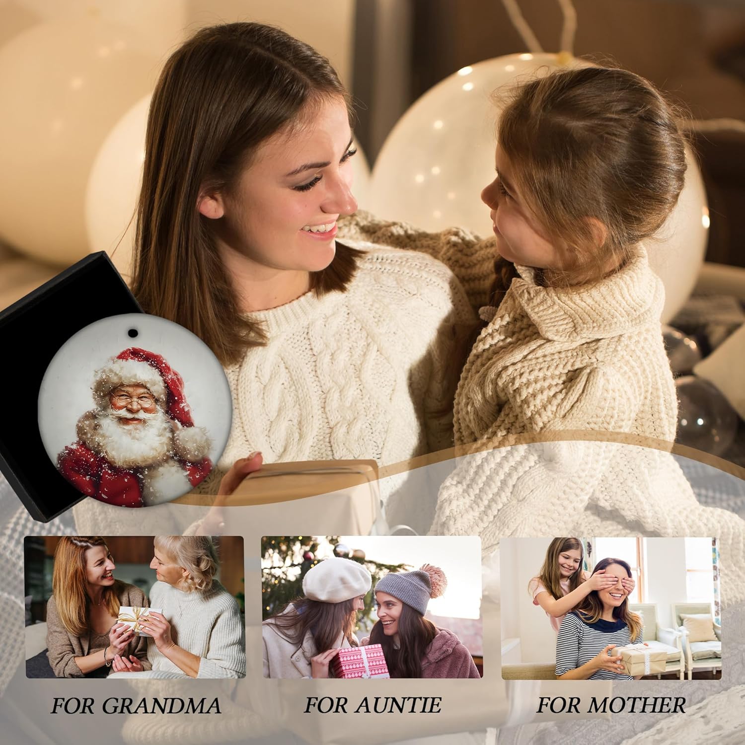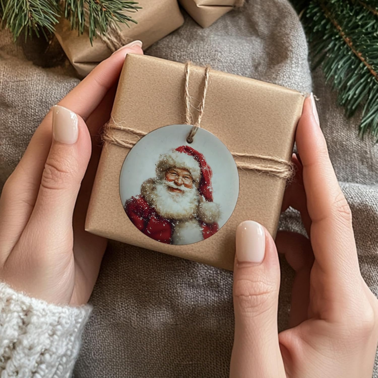 Vintage Christmas Santa Ceramic Ornament Gifts, Retro Christmas Winter Santa Claus Decorative Hanging Ornaments for Xmas Tree Holiday Party Decoration, Winter Xmas Tree Decorations
