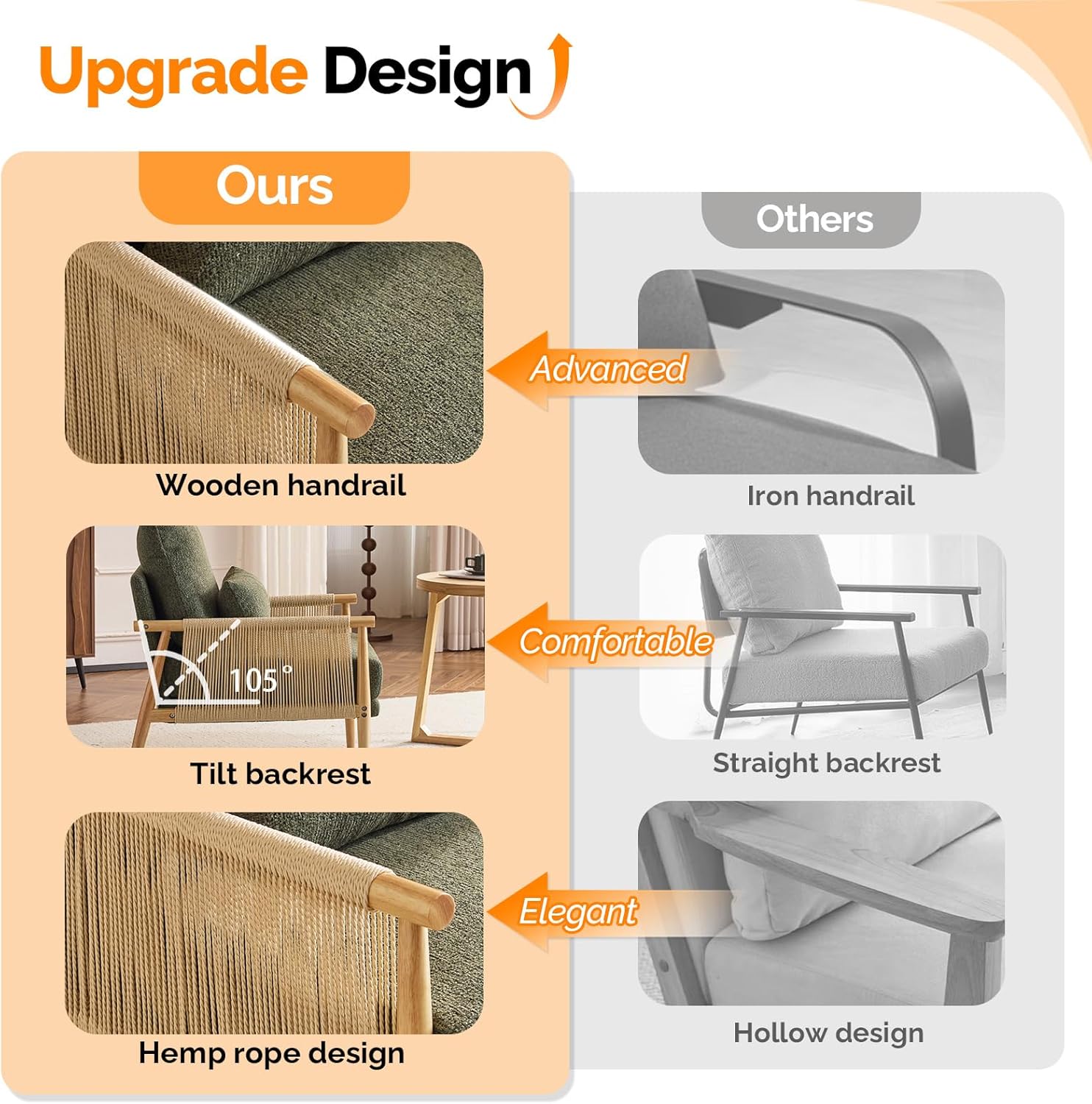 - Braid Design : The Boho-inspired Braid Accent Chair showcases elegant paper cord weaving across its angled armrests. Its thoughtful design combines comfort and style with a medium-height backrest and plush cushioning. This piece seamlessly blends casual and sophisticated interior comfort, perfect for home decoration.The two chairs will be shipped in separate packages. Please note that they may not arrive at the same time.