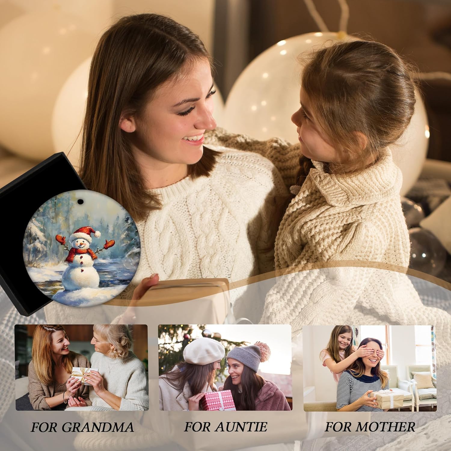 Winter Christmas Snowman Ceramic Ornament Gifts, Rustic Winter Christmas Decorative Hanging Ornaments for Xmas Tree Holiday Party Decoration, Snowman Xmas Tree Decorations