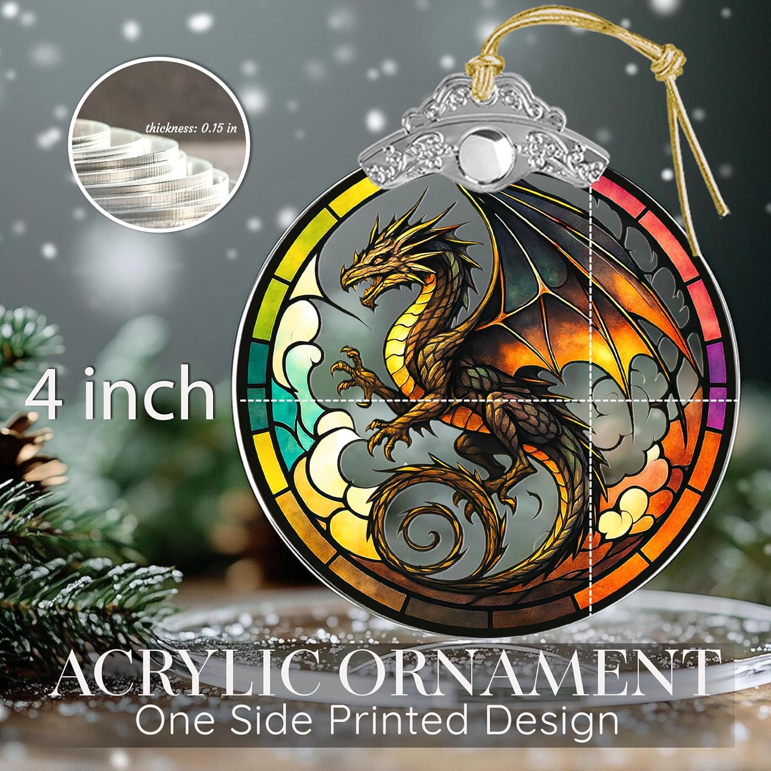 Dragon Stained Art Window Hanging β Fantasy Dragon Ornament for Christmas Tree or Home Decor β ACOTAR Fourth Wing DnD Gift β Dungeons and Dragons Decor for Fans