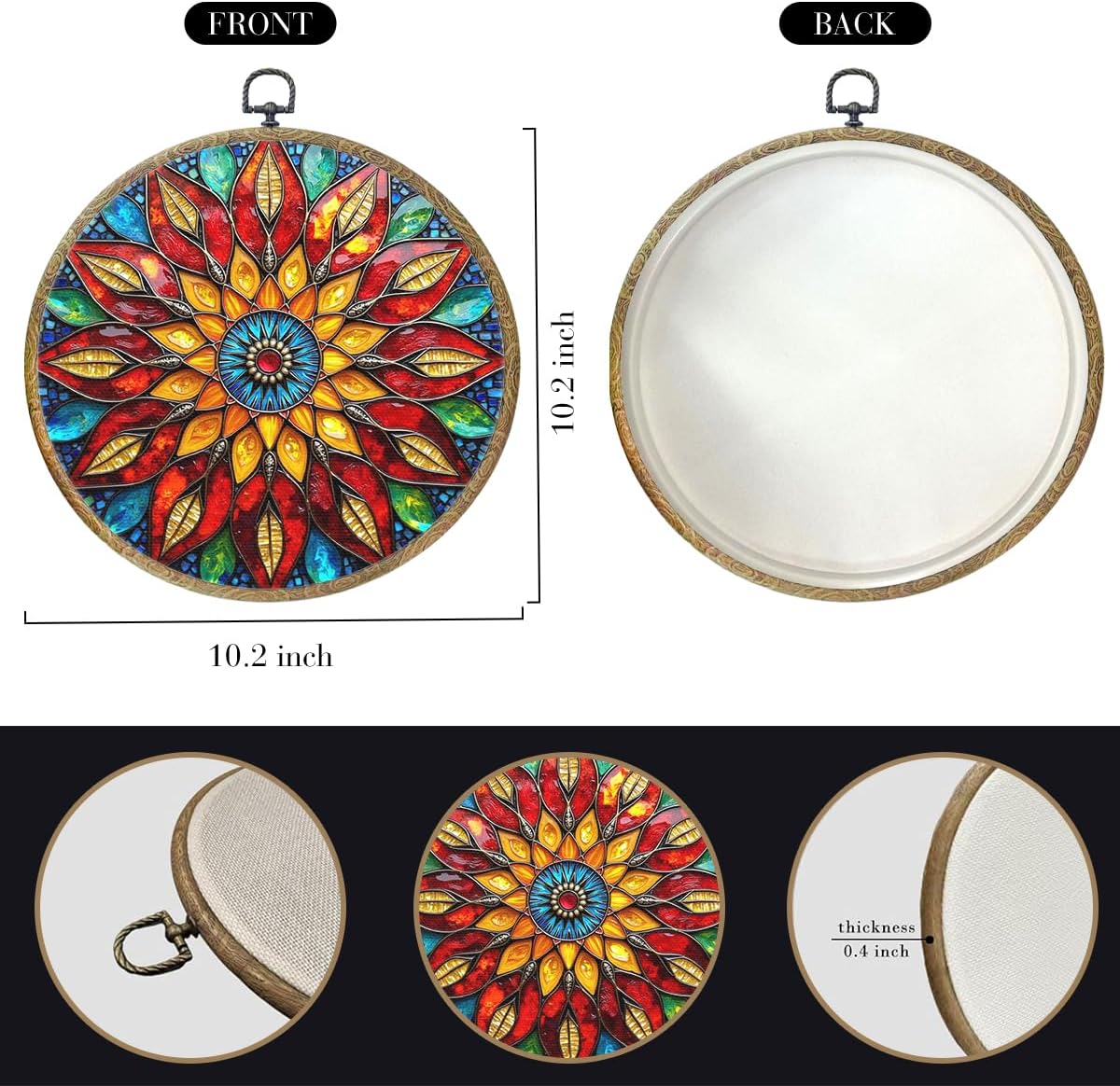 - Unique design: Our round frame is made of 100% polyester fiber (encrypted fine linen material), which combines the current popular patterns and colors. It has a variety of styles such as retro, medieval, bohemian, western cowboy, animal style, etc., with bright colors and exquisite patterns, exuding a unique artistic charm, providing you with a variety of choices.