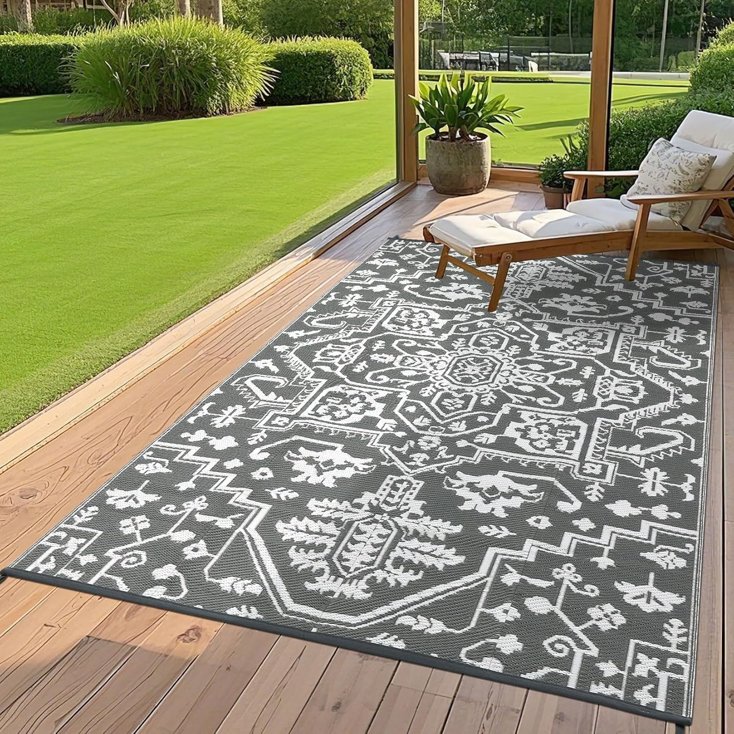 - Weatherproof & Durable Material: Crafted from premium polypropylene with reinforced, anti-fray stitching and a protective UV coating, this outdoor rug resists sun, rain, and daily wear. Perfect for backyards, porches, patios, and other high-traffic outdoor spaces