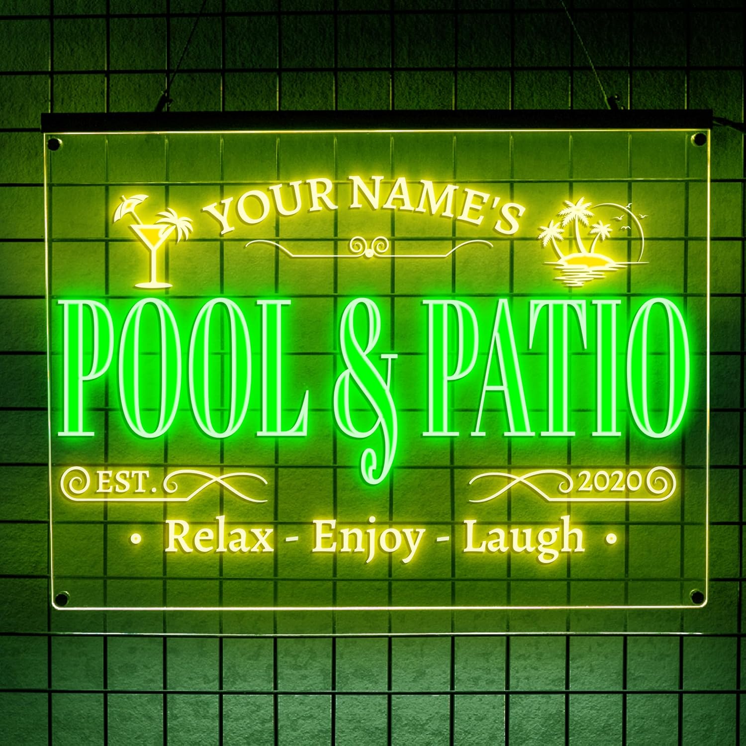 - Wide range of customizable bar signs for every space and mood. Choose from 1 or 2 color personalized neon bar signs, perfect for any custom pub sign or personalized beer sign. Available in 6 LED colors—blue, green, yellow, red, pink, and white. Each sign supports up to 2 colors, letting you personalize your home bar with the perfect mix.
