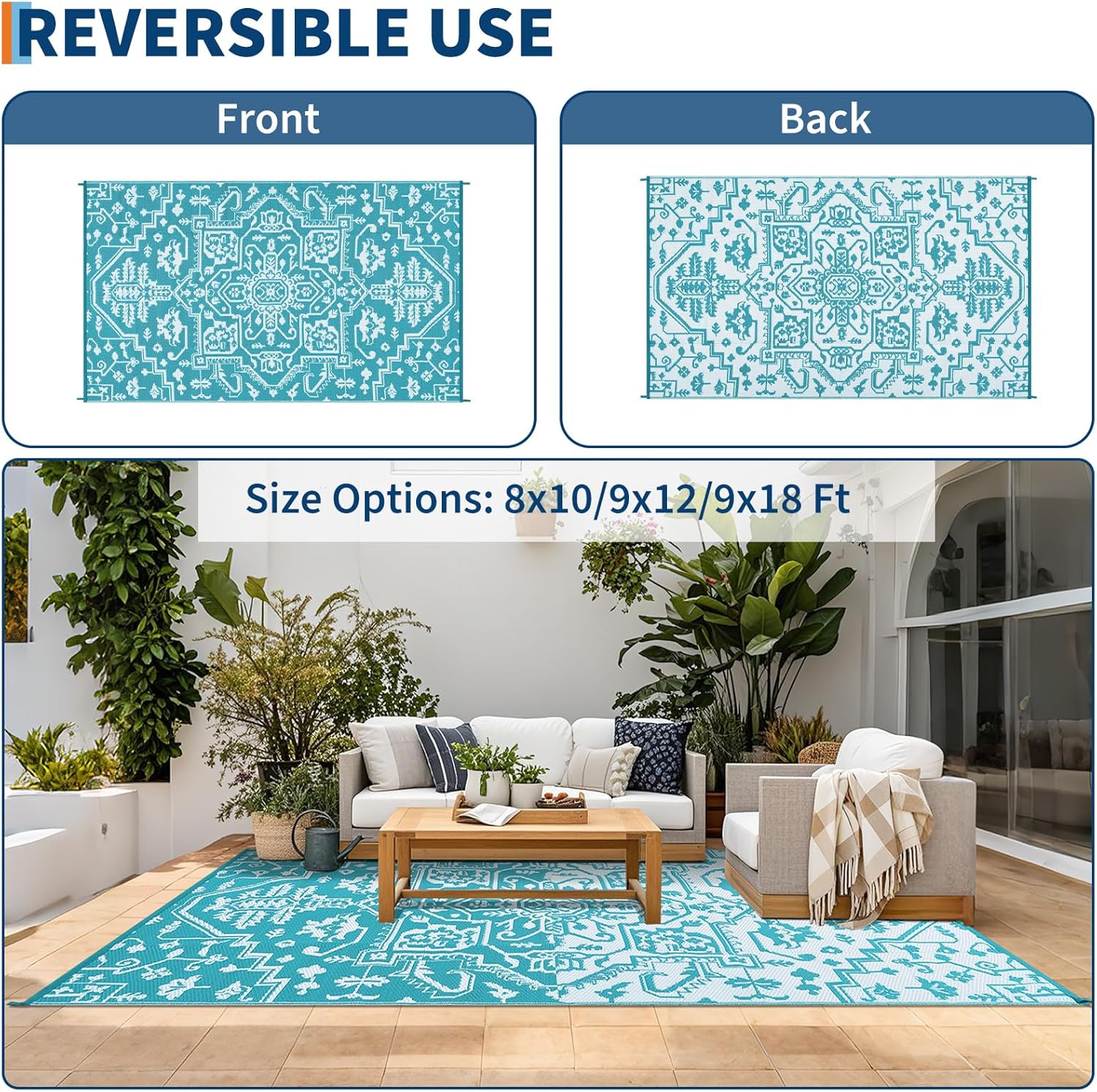 - Reversible Double-Sided Design: Switch up your outdoor look anytime with the outdoor rug's stunning reversible medallion pattern. Add elegance and a welcoming touch to patios, decks, or balconies with two stylish options in one waterproof plastic straw mat