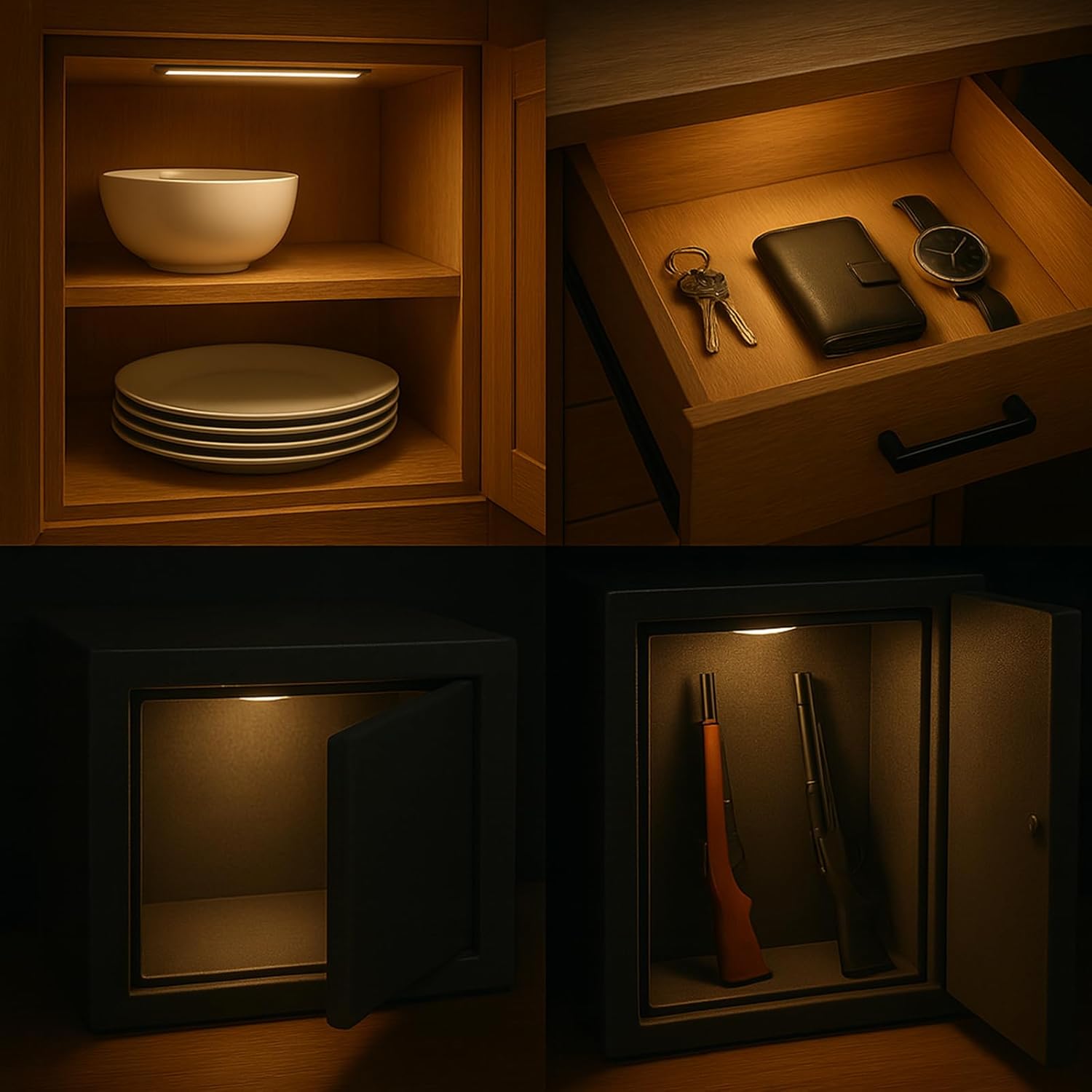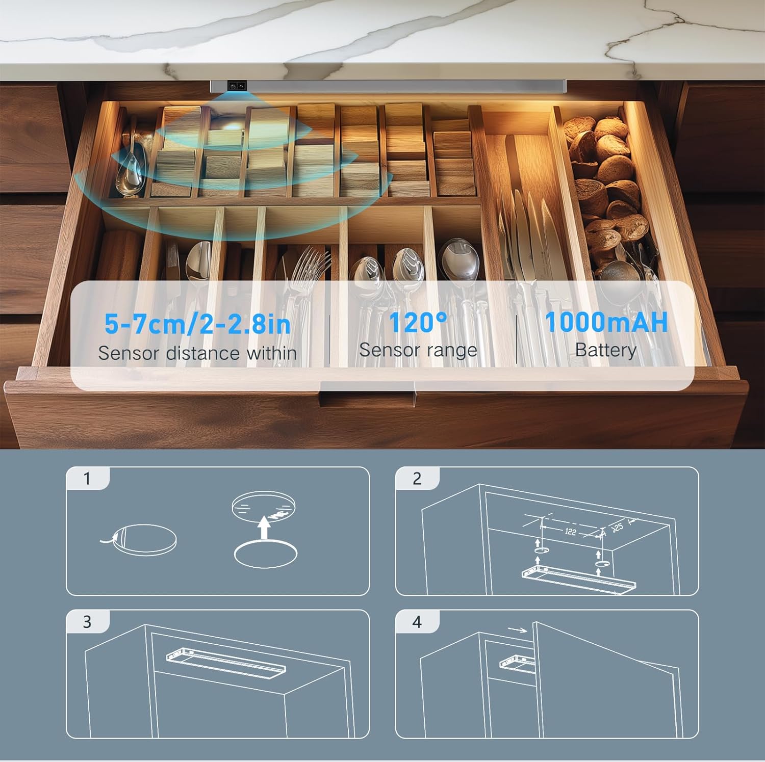 - Door Sensor: With 0.5W/3.7V 1000mAh rechargeable battery inside. No need Extra AA/AAA Battery. Wireless, It can be fixed in drawer, cabinets, gun safe for lighting.