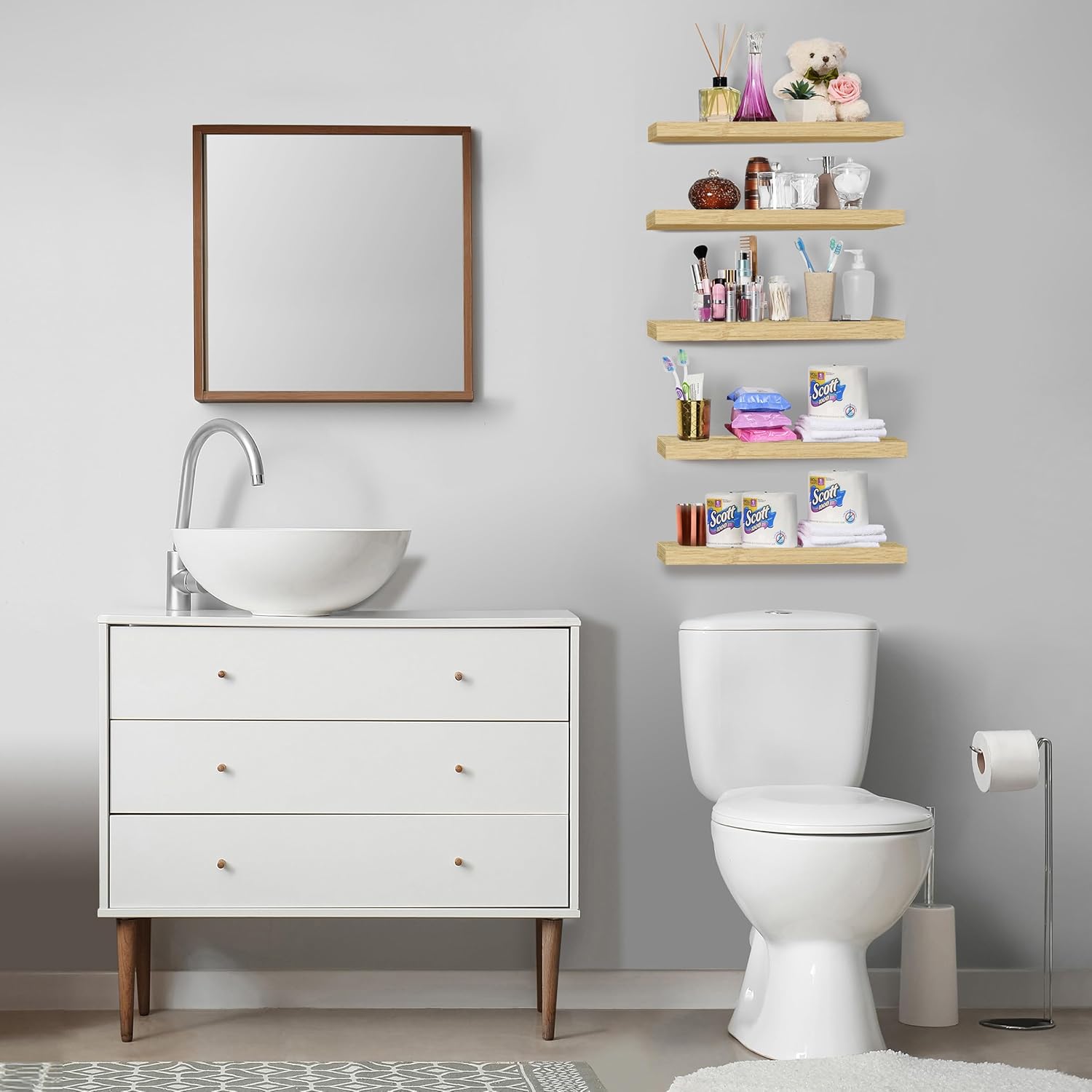 Sorbus Floating Shelves for Wall, Bathroom Shelves Wall Mounted for Kitchen, Bedroom, Living Room, Bathroom Storage, Over Toilet, Hanging Book Shelf for Wall Home Decor (Maple Wood, 5 Pack)