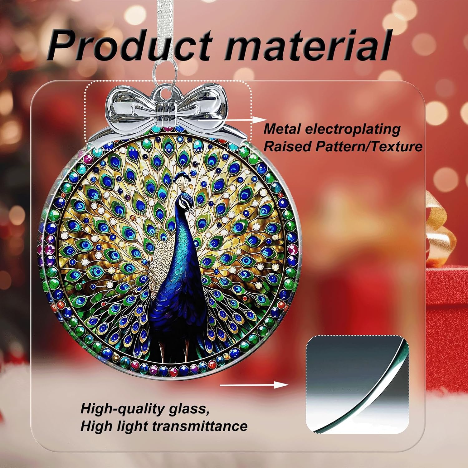 Peacock Stained Glass Christmas Ornament - Hanging Ornaments for Christmas Tree Decorations -Holiday Keepsake Present Exchange Idea