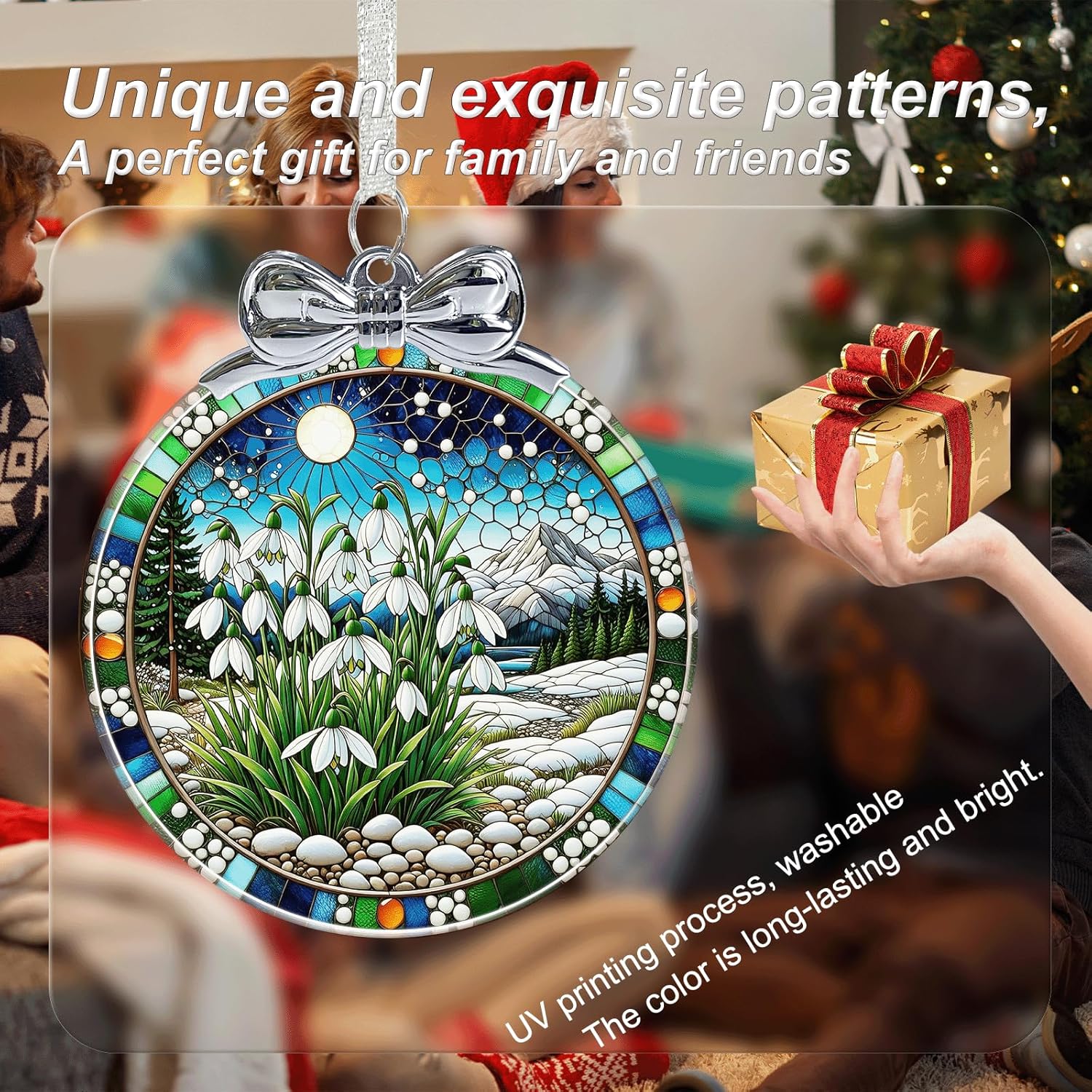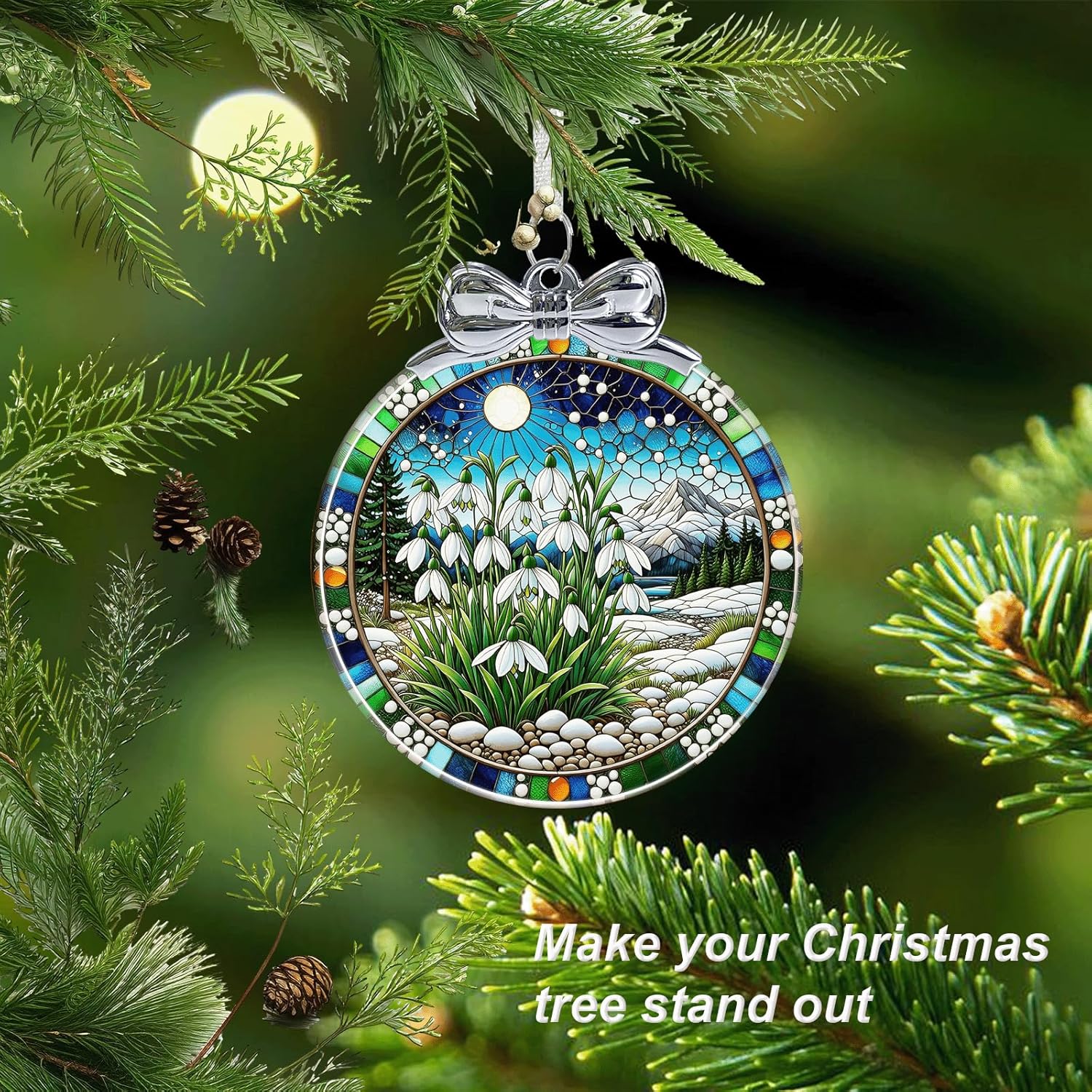 Snowdrop Stained Glass Christmas Ornament - Hanging Ornaments for Christmas Tree Decorations -Holiday Keepsake Present Exchange Idea