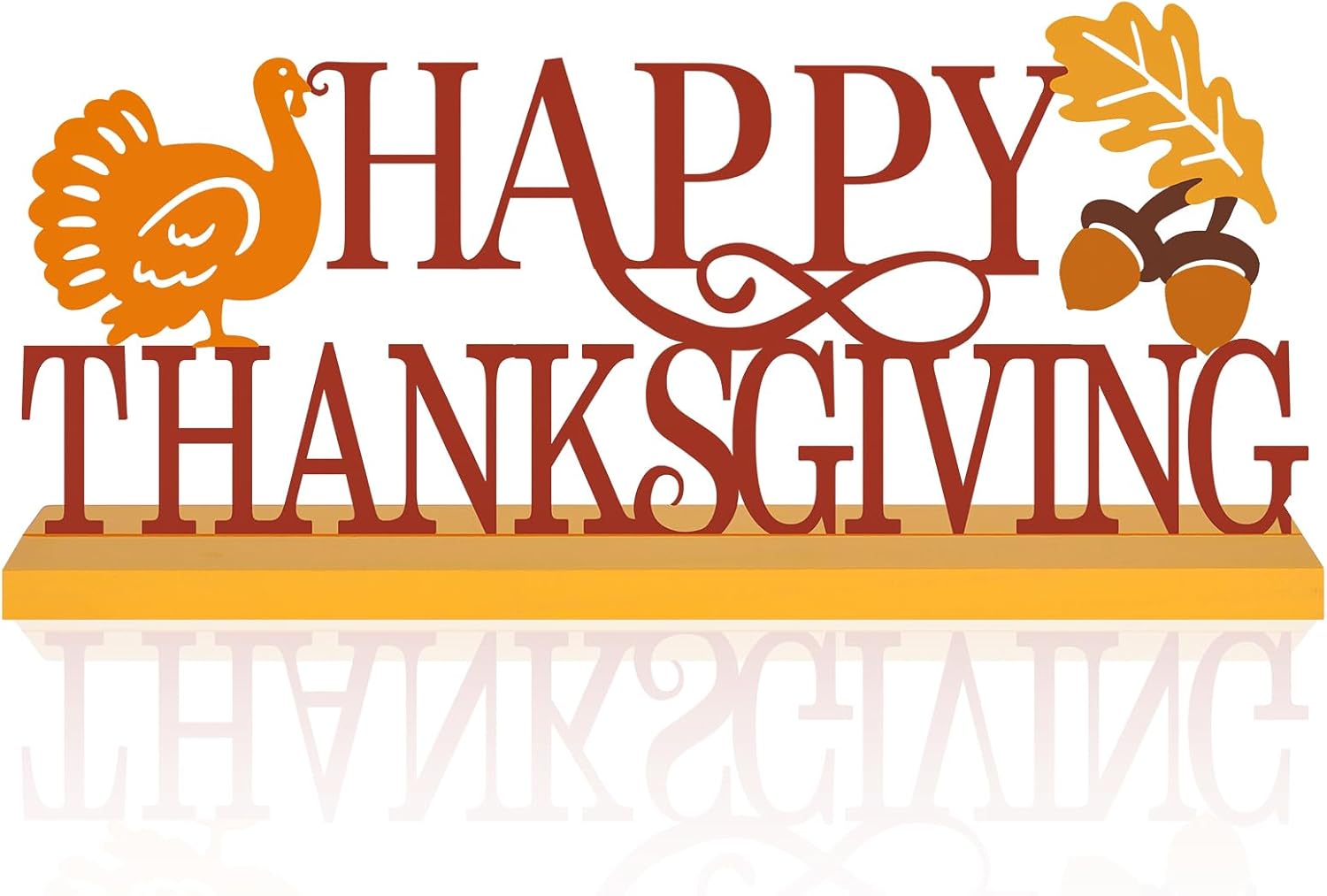 - Metal Happy Thanksgiving Signs Decorations - The Package includes a orange and brown color metal 'Happy Thanksgiving' sign and a wooden base. It can easily bring you a simple but vibrant feeling.