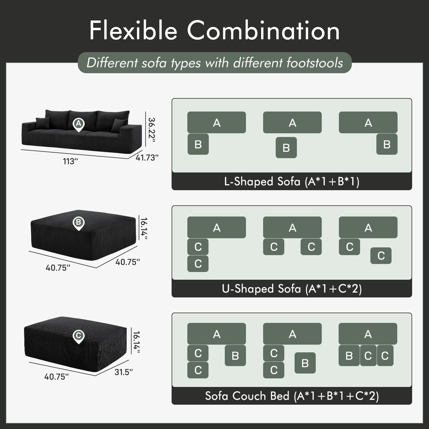 - Versatile Design for Everyday Living: More than just a sofa—this modular set balances style and functionality for busy households. Its compact footprint fits 3-4 people without overwhelming the room, while the separate pieces can be rearranged for movie nights, game days, or extra seating. Backed by high-quality construction, the sofa’s sturdy frame and fade-resistant fabric ensure long-lasting durability, making it a practical choice for any home.