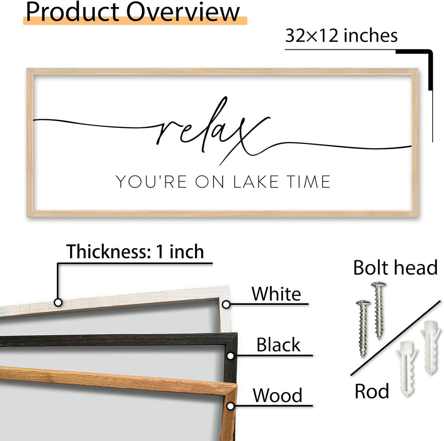 SRSZHIYUE Relax You're On Lake Time Wall Decor Above Bed Sign 32"×12" for Lake House Bedroom Over Bed Large Wood Framed Hanging Art (Wood)