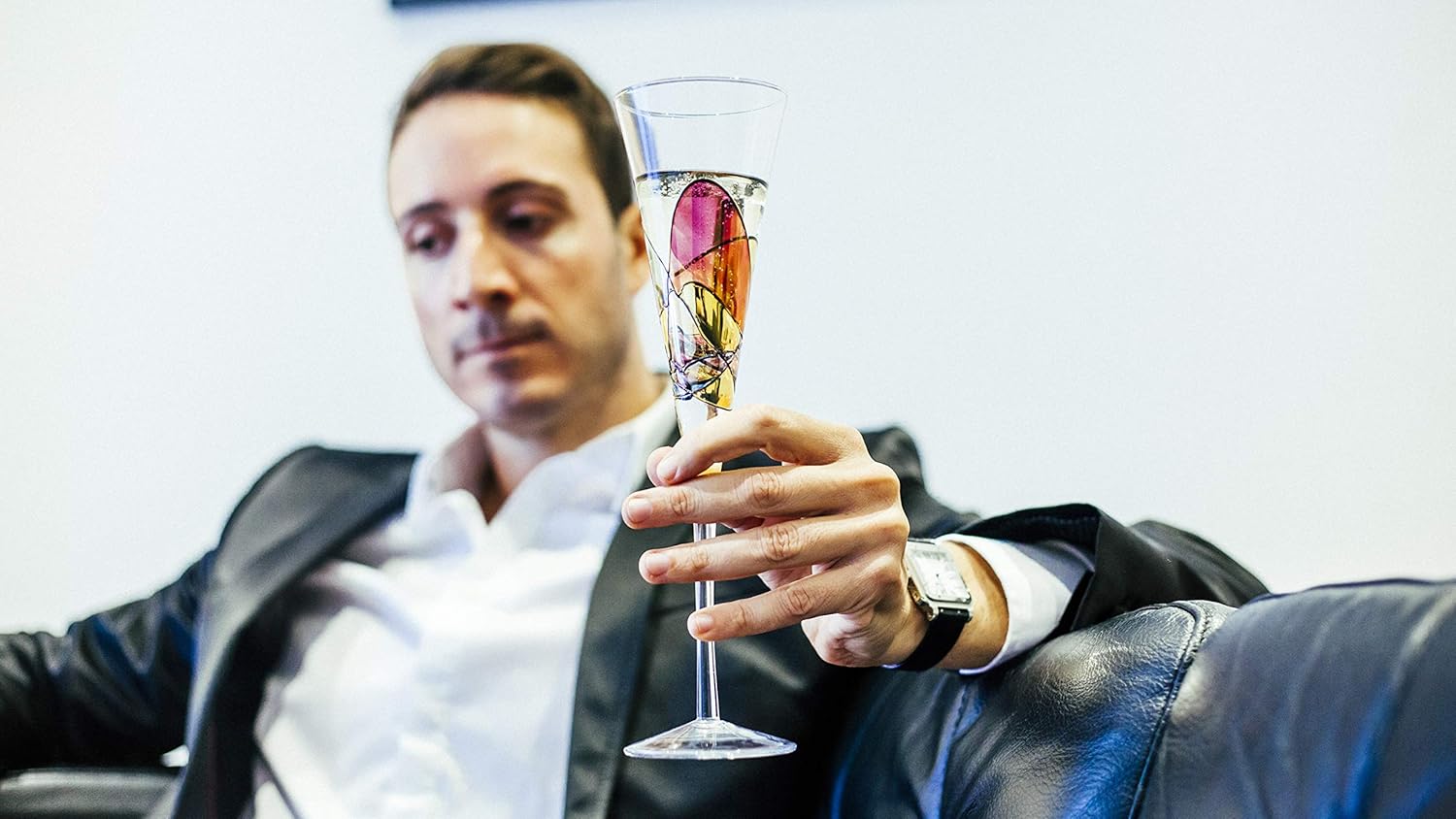 Victoria Barcelona Champagne Flute 7.5 Oz Set 4 Mouth-Blown Hand Painted Antoni Gaudi & Murano Inspired Artistic Unique Gift Ideas Anniversary Birthday Weddings Women Men