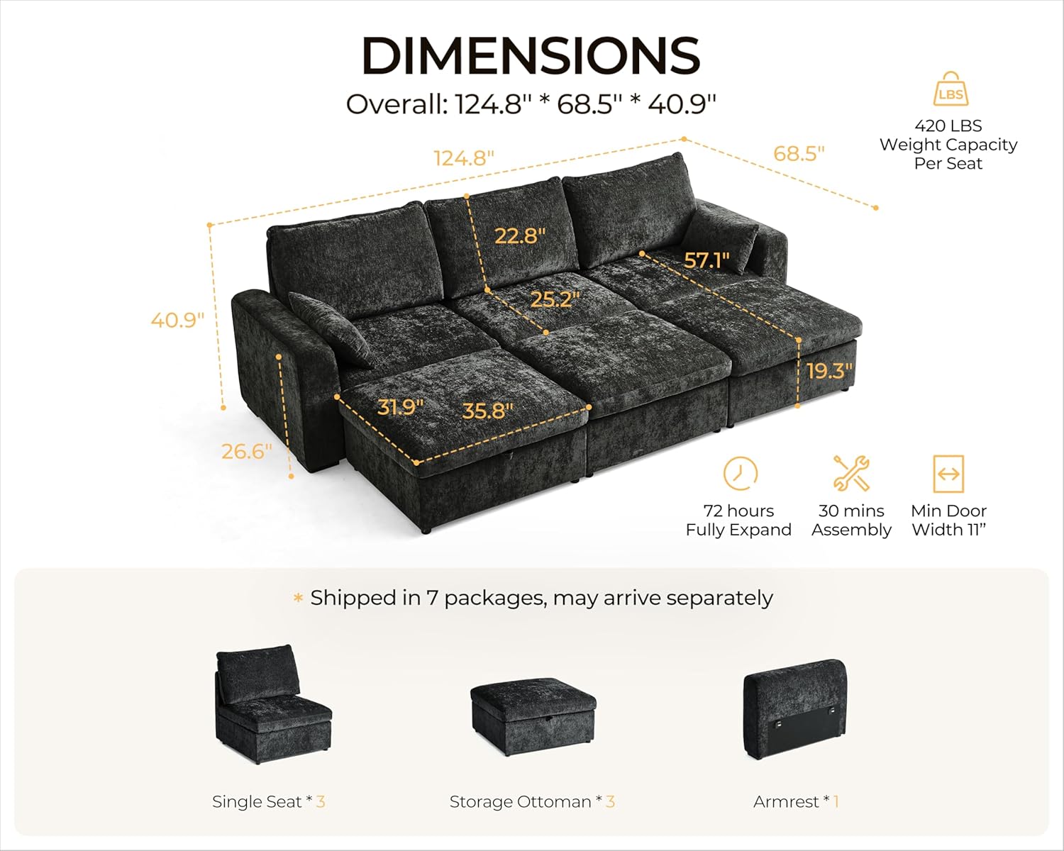 - ăMultiple Packages & Dedicated Supportă Your cloud modular sectional couch ships in 7 separate packages, which may arrive at different times. If you receive only some boxes, donât worryâmore are on the way! Need additional tracking details or assistance? Weâre happy to helpâjust reach out! Our team is here to ensure you receive everything as expected and guarantee a smooth, hassle-free shopping experience with your complete satisfaction