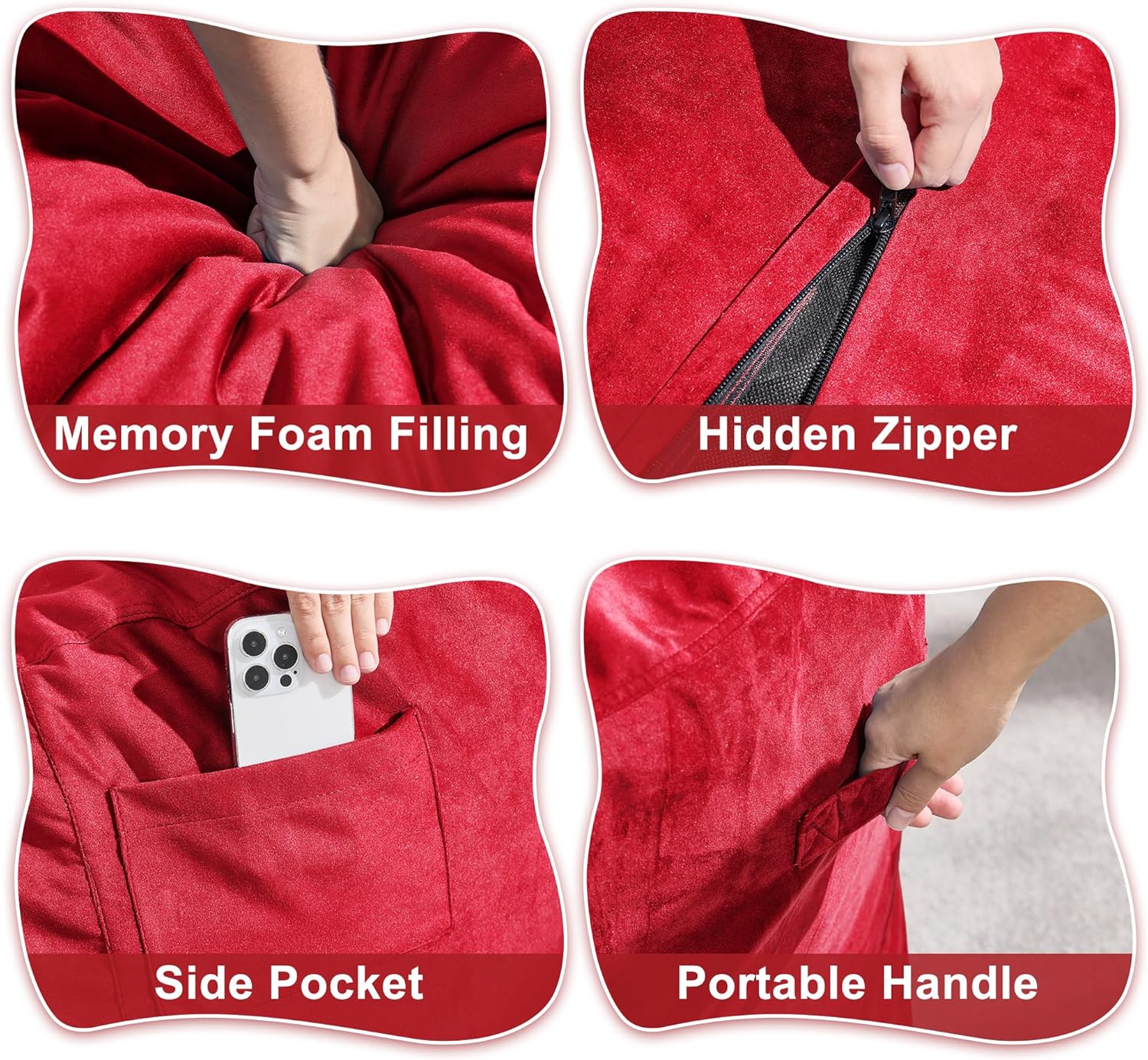 Hobestluk 6FT Bean Bag Chair Bean Bag Chairs for Adults Giant Bean Chairs with Velvet Cover, Memory Foam BeanBag Chair Fluffy BeanBag Chairs for Living Room, Bedroom- Red (70" x 70" x 15")