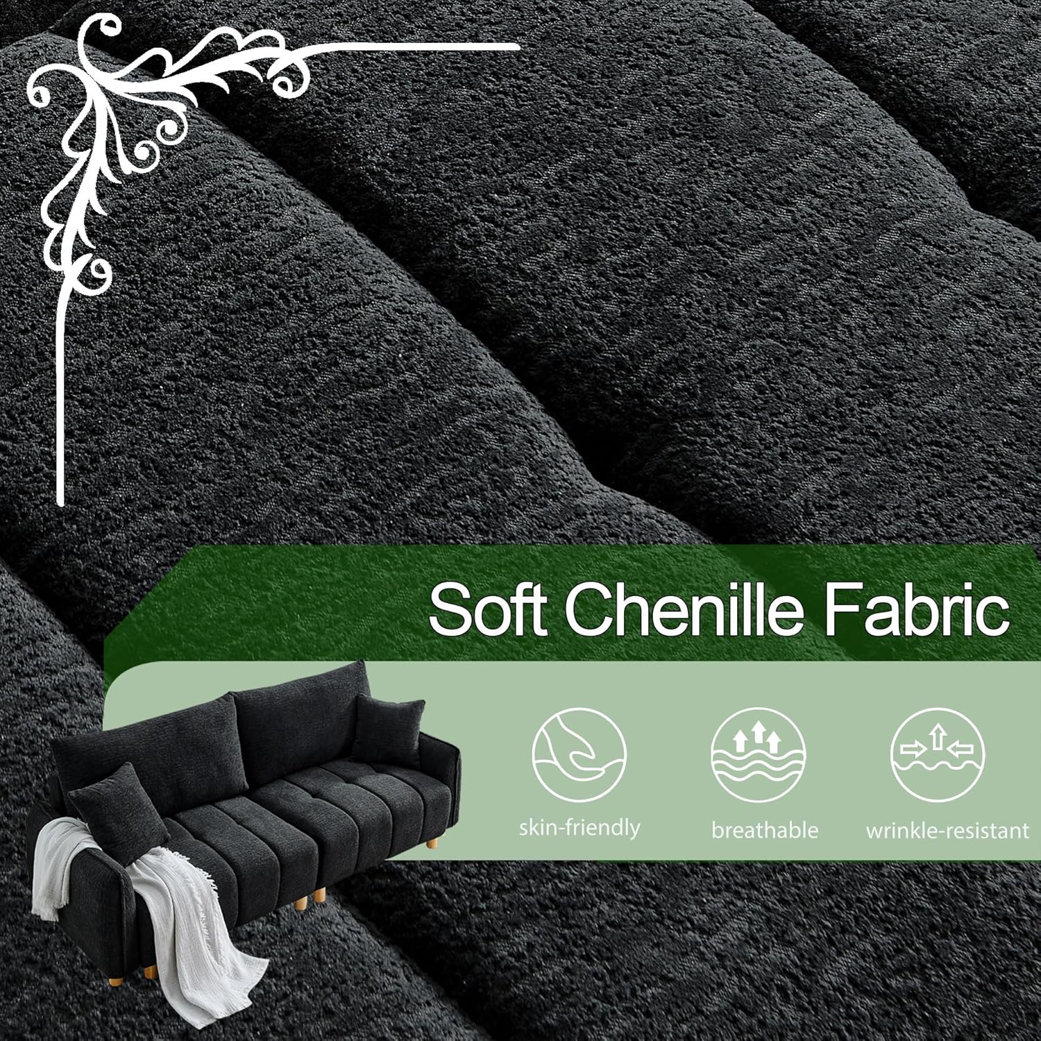 Convertible Sofa Bed, 90" Full Size Sleeper Sofa with Storage, Tufted Chenille 3 Seat Sofa Couches for Living Room, Small Spaces, Guest Room, Apartment, Black