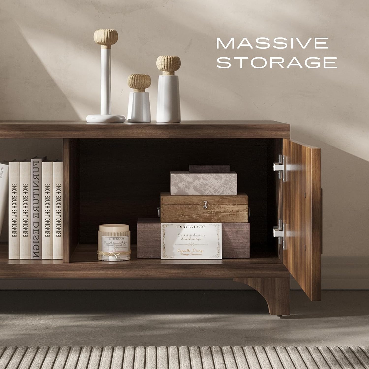 - [Clutter-Free Cable Management]- Designed with 1 open shelf and 2 cabinets, this tv console features hidden cable access holes (1 per cabinet) to neatly store game consoles, routers, and cables. Keep your space tidy and minimalist, just the way you like it.