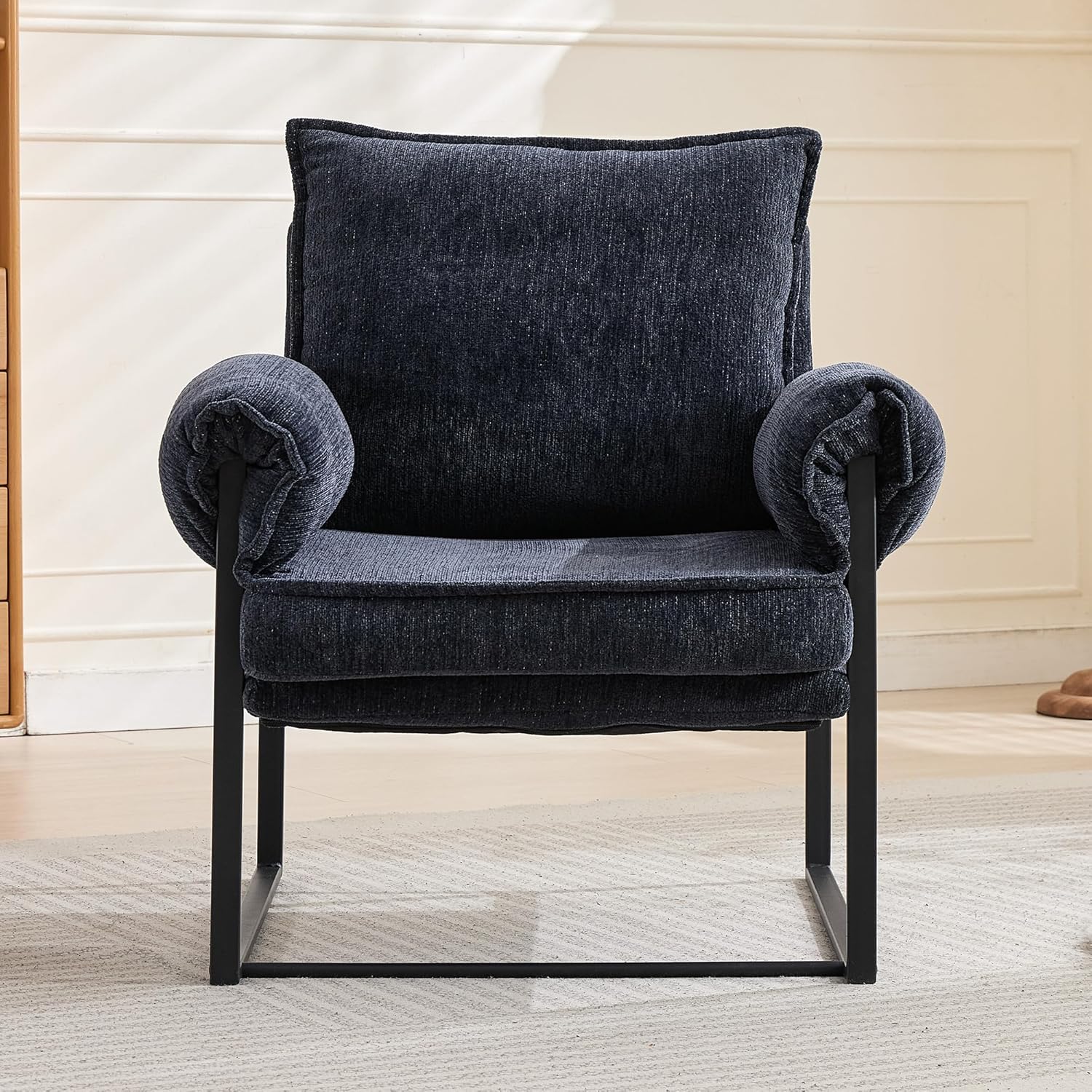 - Mid-Century Modern Design for Stylish Homes: Elevate your space with this modern armchair’s sleek lines, low-profile seat, and elegant chenille upholstery. Its versatile design blends seamlessly into living rooms, bedrooms, or home offices.