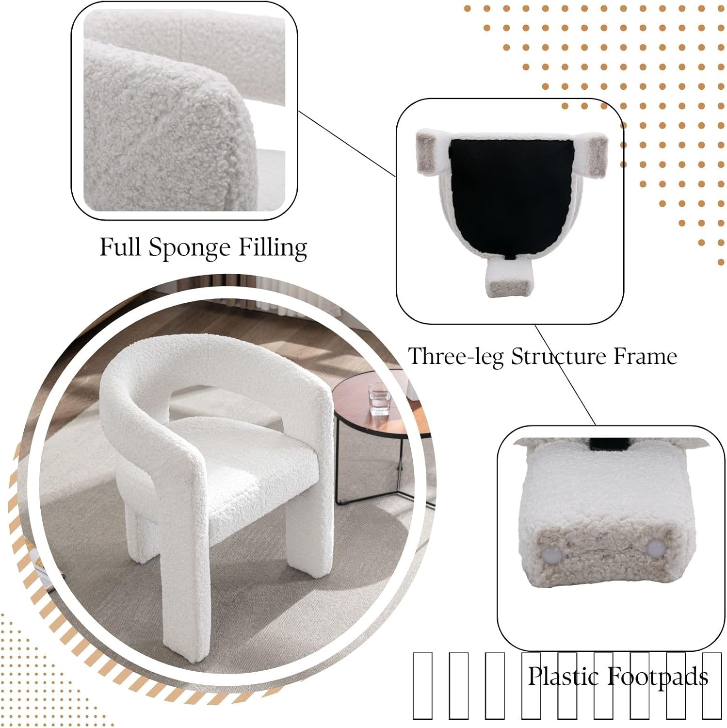 White Boucle Dining Chairs Set of 6, Modern Barrel Dining Room Chairs Upholstered Faux Fur Accent Chair with Arms and Round Back for Living Room Kitchen Armchair No Assembly Needed