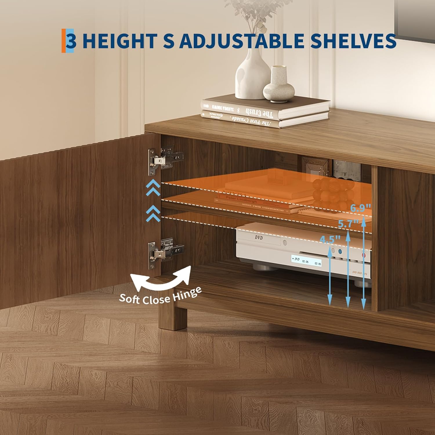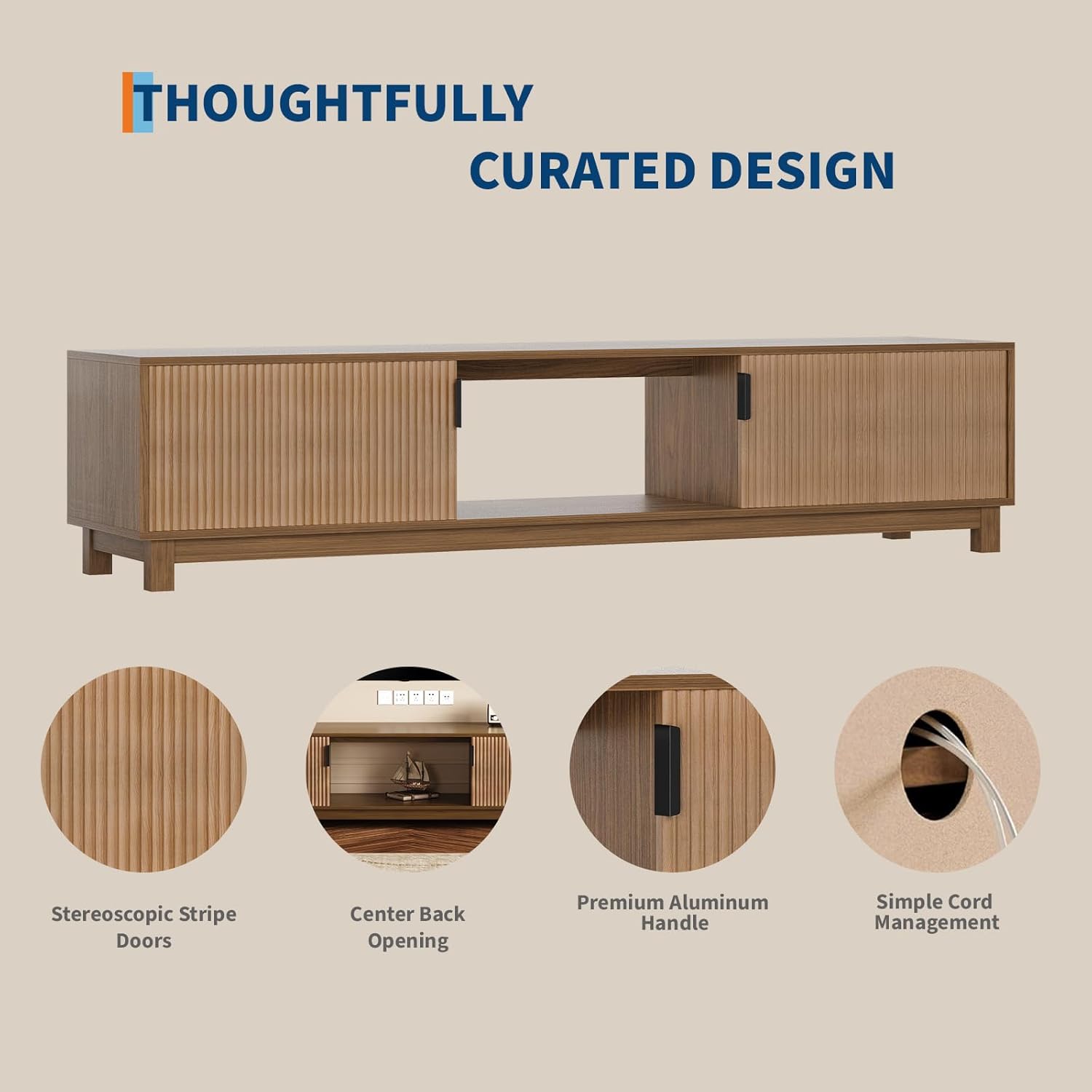 - ă Exquisite Mid-Century Masterpieceă-Immerse your space in timeless sophistication. Our TV console showcases elegant fluted cabinet doors and gracefully rounded edges, hallmarks of authentic mid-century modern design. Crafted in a rich walnut finish, it transforms into a breathtaking centerpiece that elevates any living room or bedroom decor.