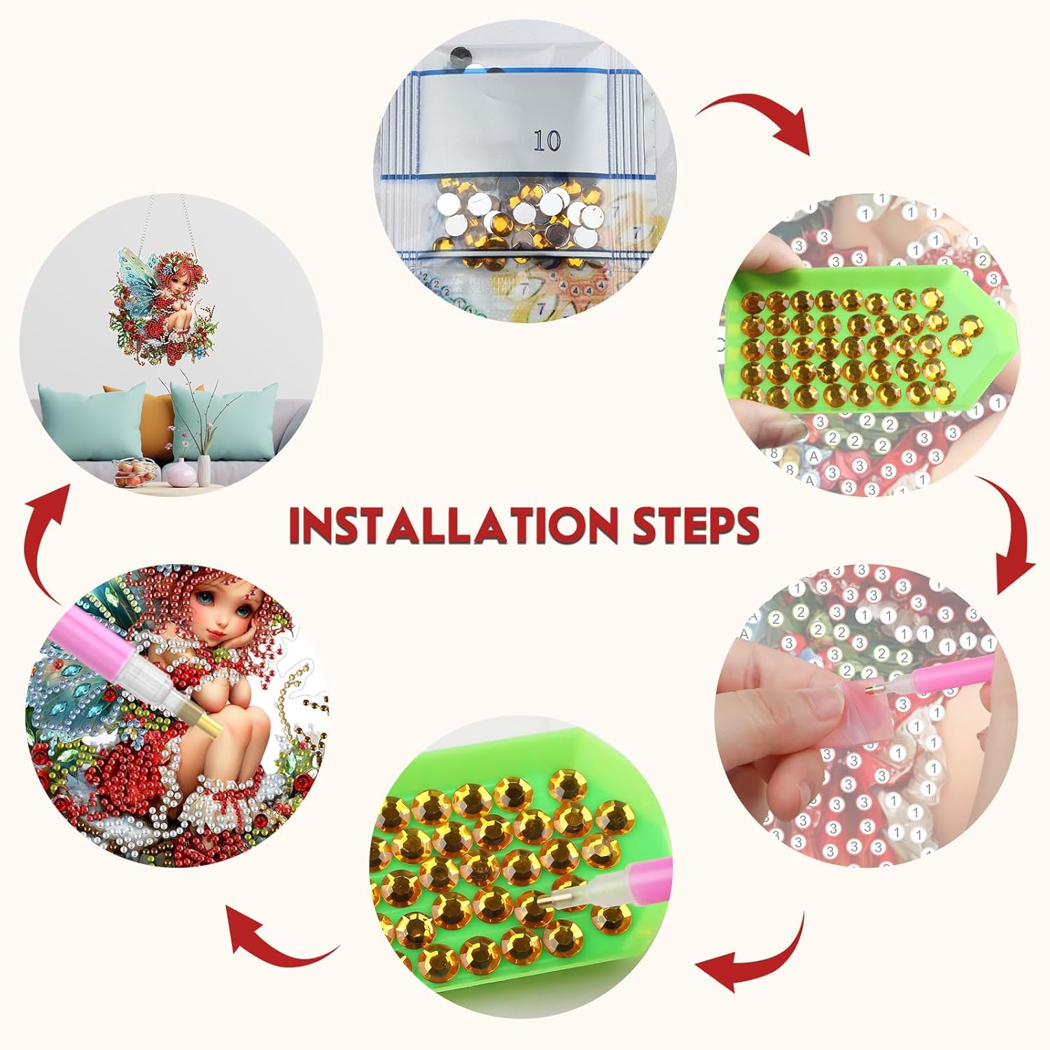 - What You’ll Receive: Includes numbered acrylic hanging plate x1, iron chain x1, diamond pen x1, tray x1, wax pad x1, plenty of diamonds, and a beautiful box—everything you need to start your diamond art project