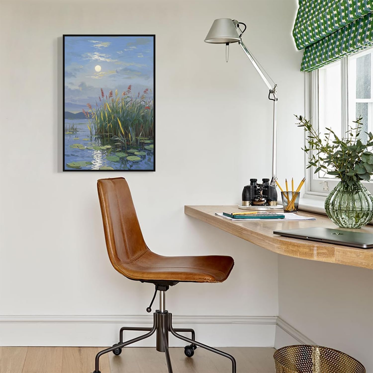 Landscape poster artwork art poster natural landscape painting reed marsh under the moonlight suitable for living room bedroom home wall