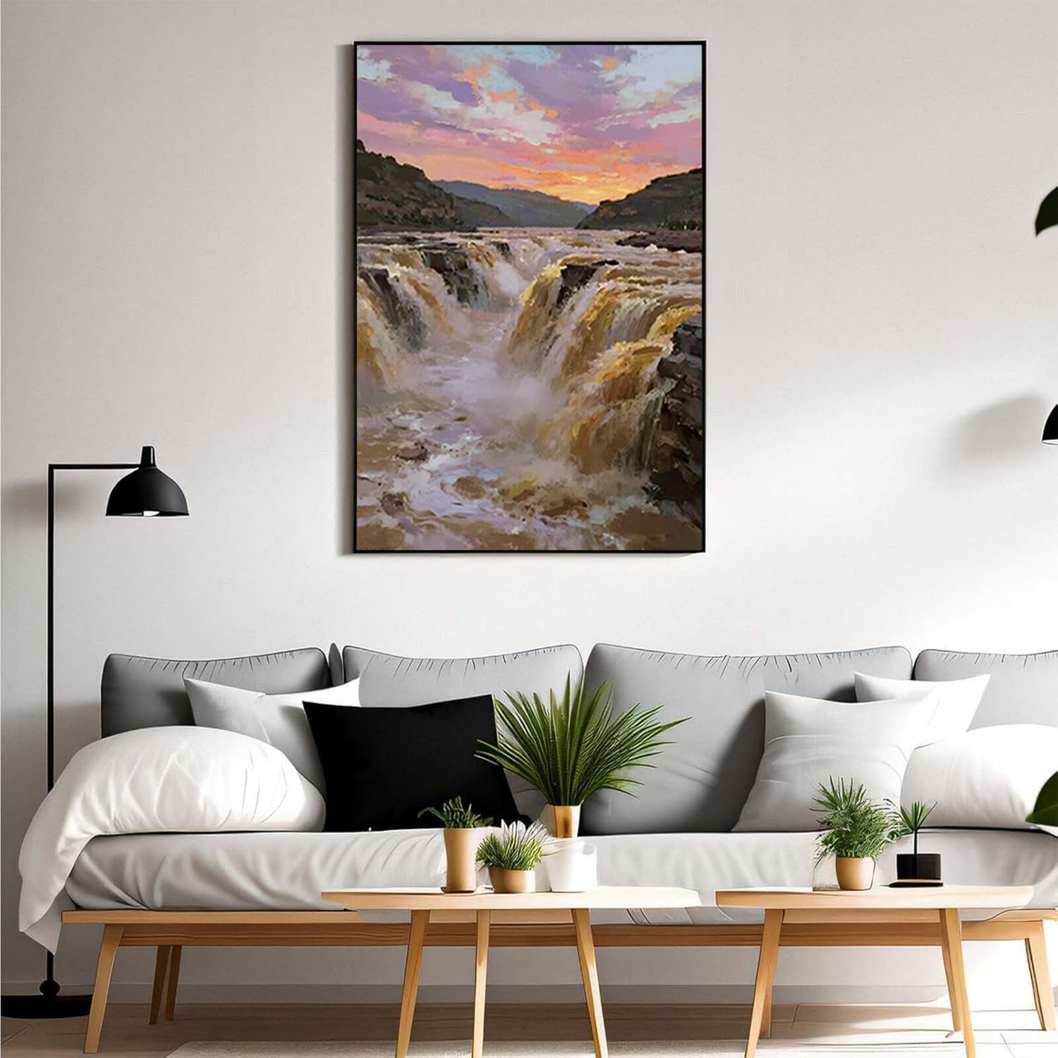 The surging waterfall scenery in the canyon is suitable for posting in the living room bedroom and office landscape posters