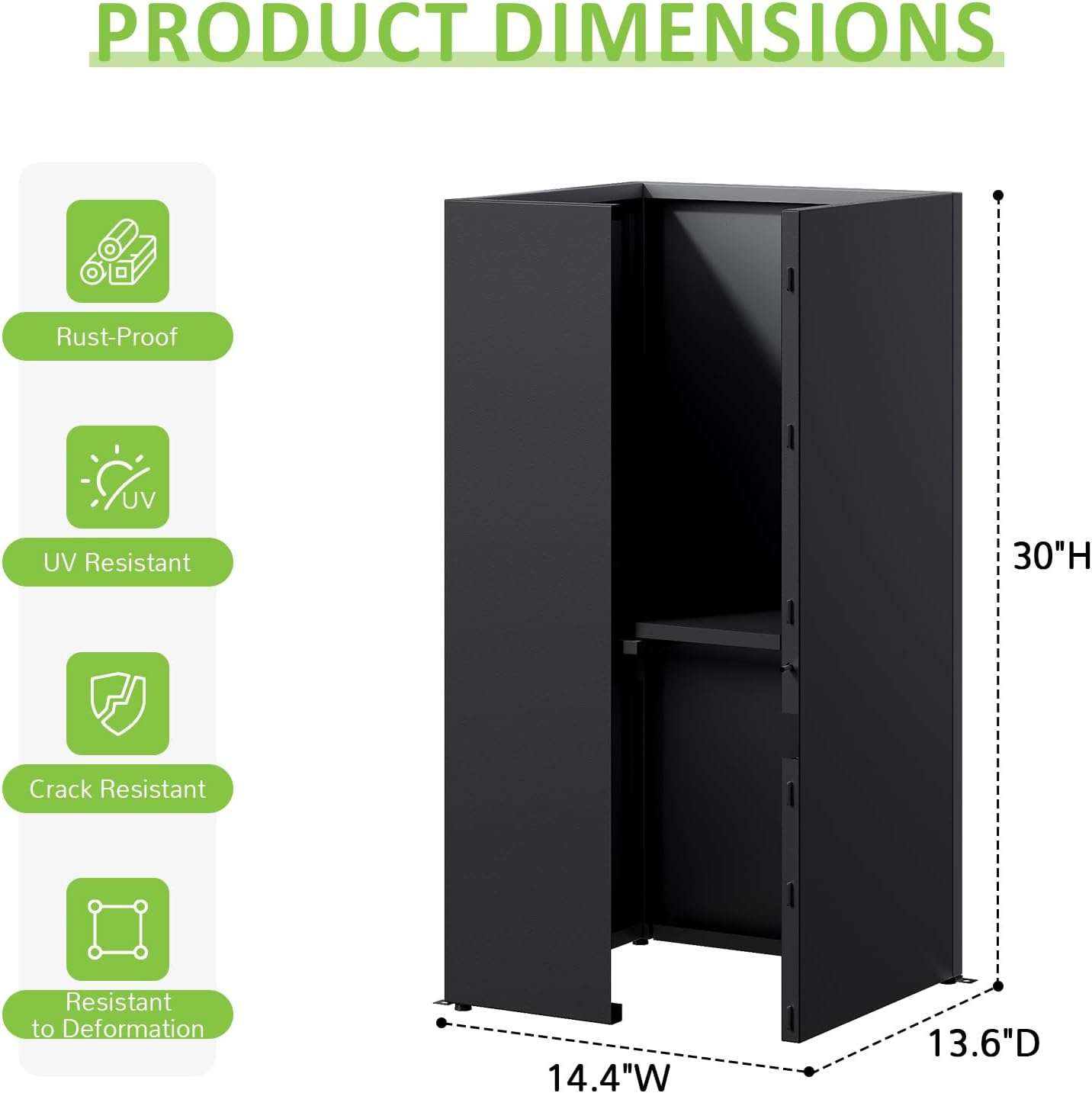- TALL PLANTER: With exterior size of 14.4"W x 13.6"D x 30"H, the outdoor planter is ideal for a variety of plants, from flowers and herbs to small shrubs. The size and depth making it perfect for both decorative and practical gardening needs.