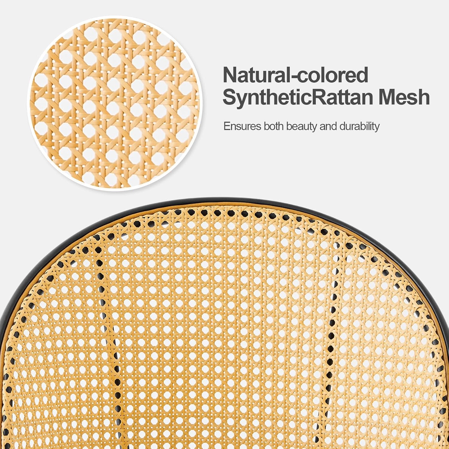 - 【Ergonomic Curved Backrest and Sturdy Frame】: The handcrafted hexagonal mesh fabric adds an elegant touch and showcases fine workmanship, while the woven rattan backrest provides comfort and breathability. With a full backrest design, the rattan chair provides ergonomic body support. A reinforced iron frame ensures strong load-bearing capacity and structural stability. It can support 300 pounds of weight. Each chair also has 4 adjustable feet, which make leveling uneven surfaces easy