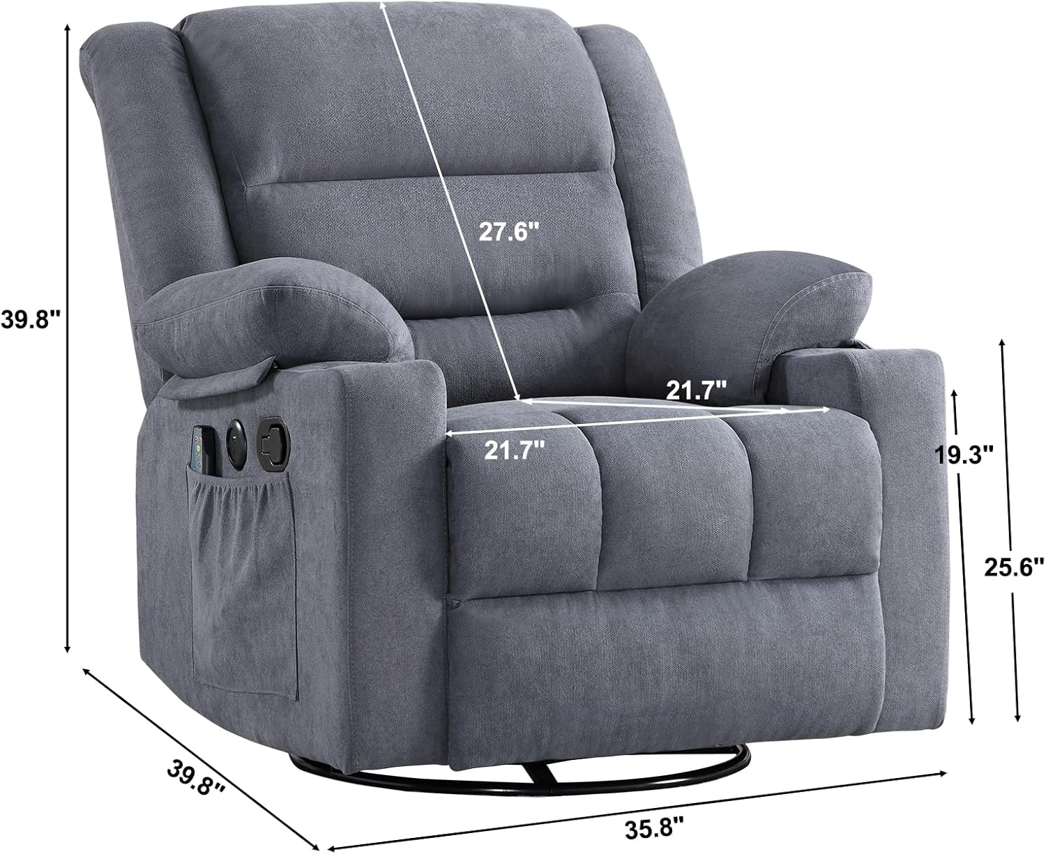 - Convenient Storage: Equipped with side pockets and dual cup holders, this recliner keeps essentials within reach—ideal for reading, watching movies, or enjoying a drink. Stay connected and powered up with the USB and Type-C charging ports.