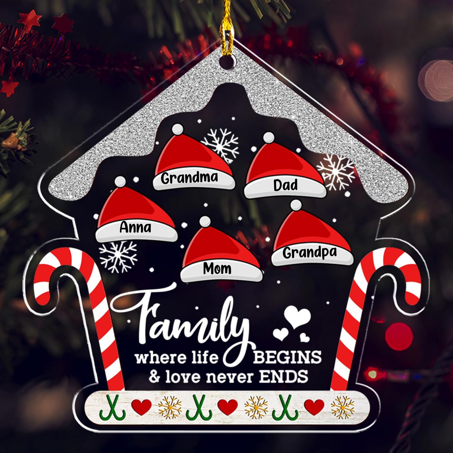 Personalized Chrismas Ornament 2025 - Love Never Ends, Custom Name Charms Family Members up to 10 People, for Family, Friends, and Loved Ones