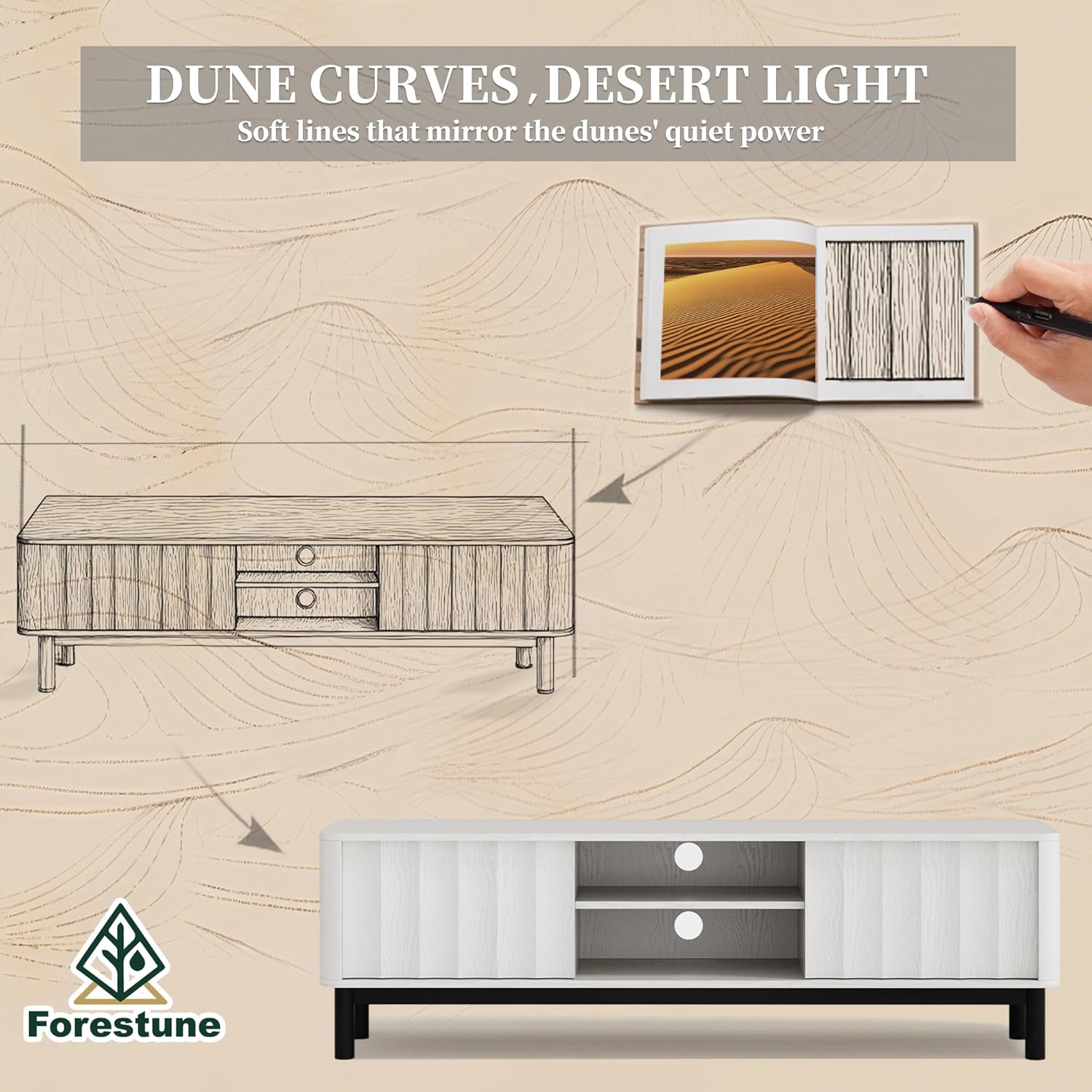 - DESERT-INSPIRED FLUTED DESIGN - The Forestune white TV stand channels the quiet power of sand dunes with soft, sculptural ridges that catch and diffuse light, turning your living room into a calming retreat with mid-century modern soul