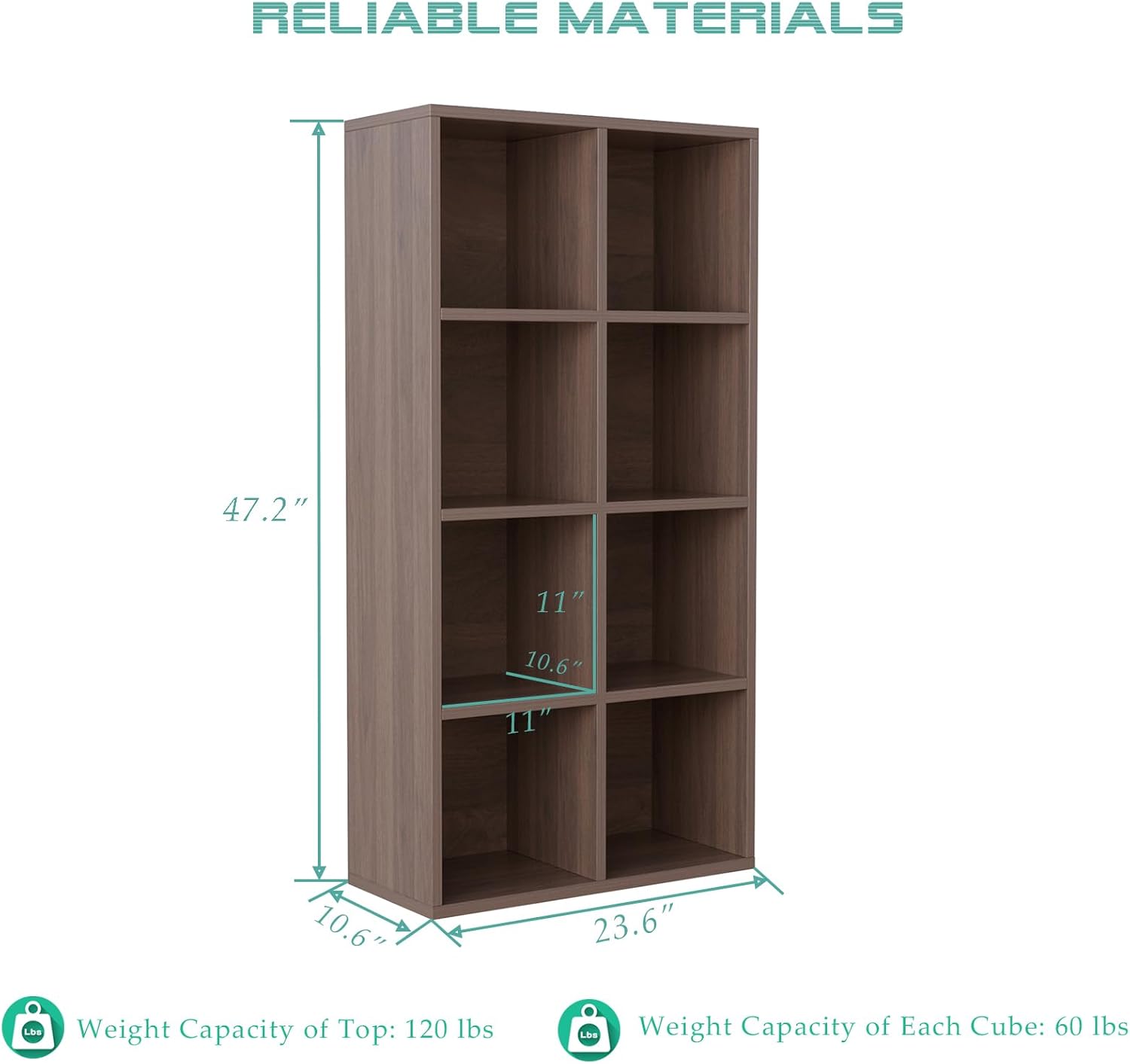 8-Cube Storage Shelf Bookcase - Wooden 4-Tier Floor Standing Open Bookshelf for Home and Office, Cuby Orgainzer, Walnut