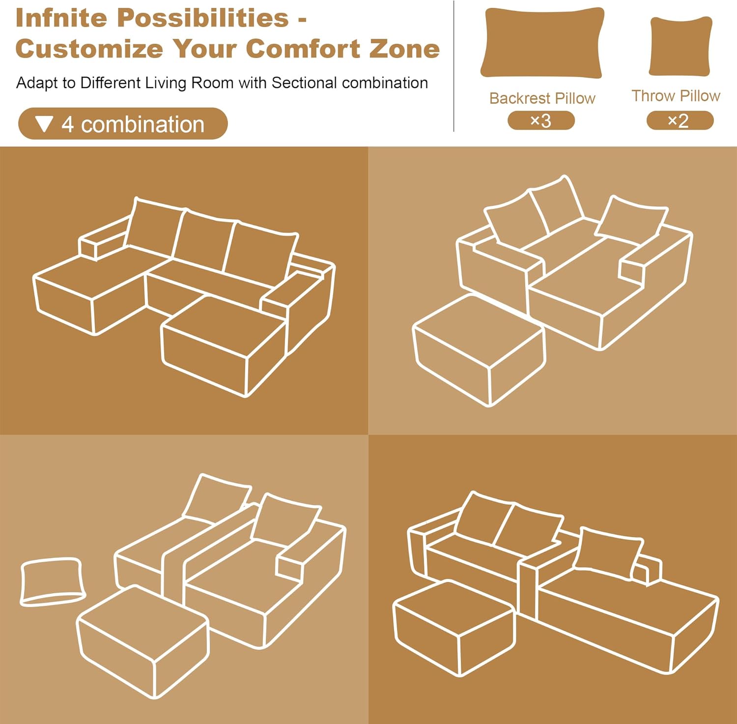 108" Sectional Couches for Living Room Modern Modular Sofa with L-Shape Couchs Upholstered Boneless Couch Deep Seat Sectional Couch with Chaise (Green, Left Facing Chaise+2Seaters+1Ottoman)