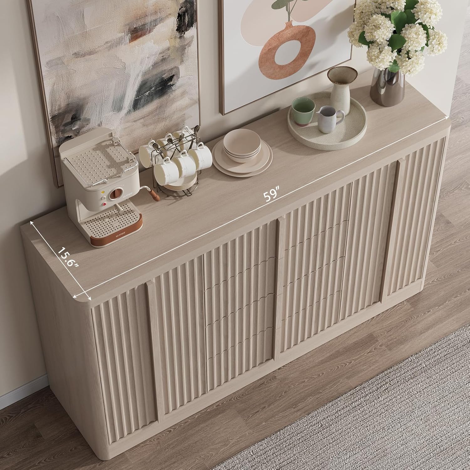 - ăMinimalist & PracticalăThis fluted buffet cabinet with drawers features elegant waveform panels and a curved profile, blending with farmhouse, mid-century, and modern dĂ©cor. Stylish and functional, this fluted buffet cabinet enhances your entryway, living room, or hallway