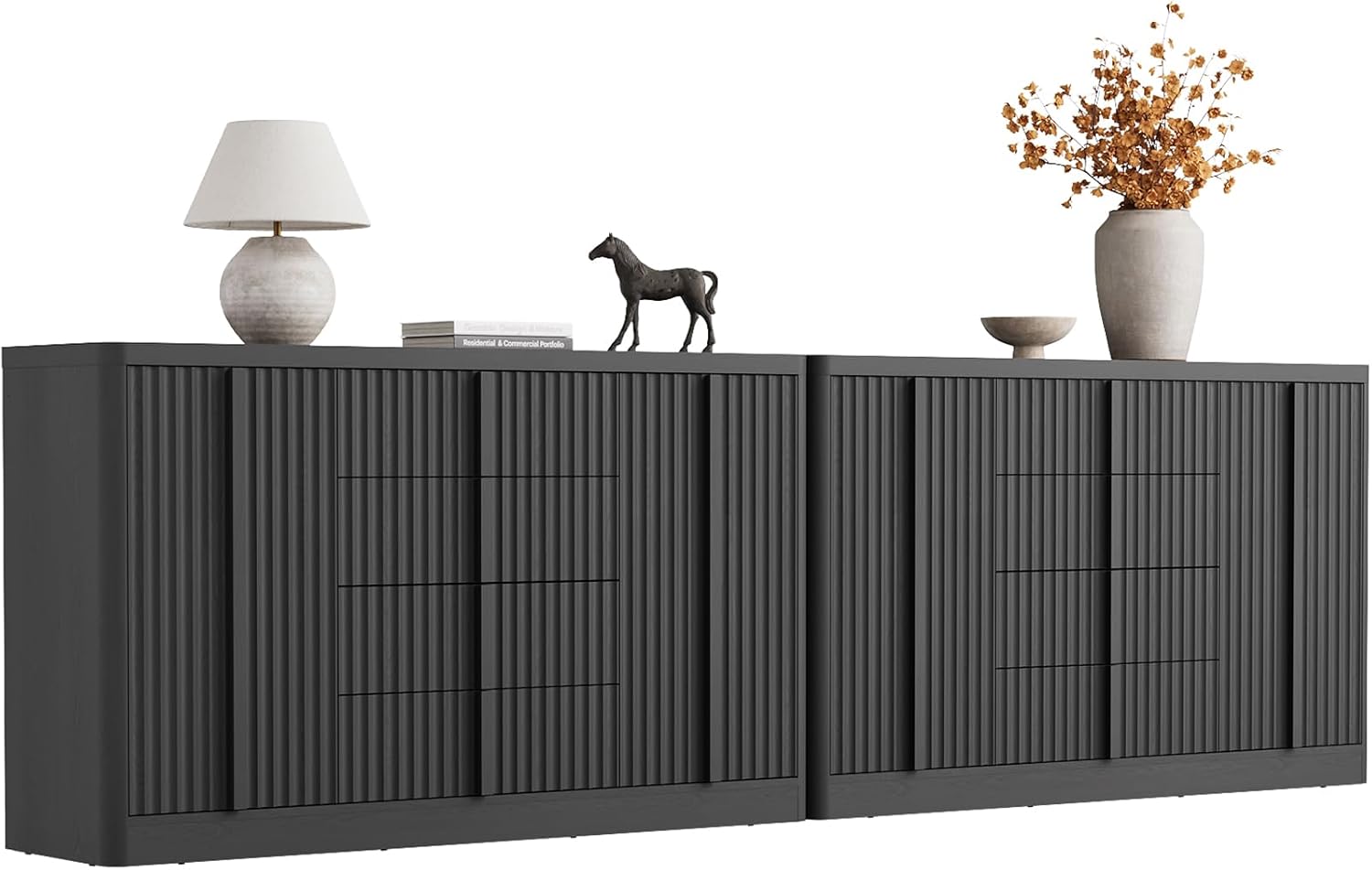 Buffet Cabinet with Storage, 120" Fluted Coffee Bar with 8 Drawers & 4 Doors, Modern Sideboard Buffet with Solid Wood Handle, Credenza Storage Cabinet for Living Room Kitchen Dining Room, Black(2PCS)