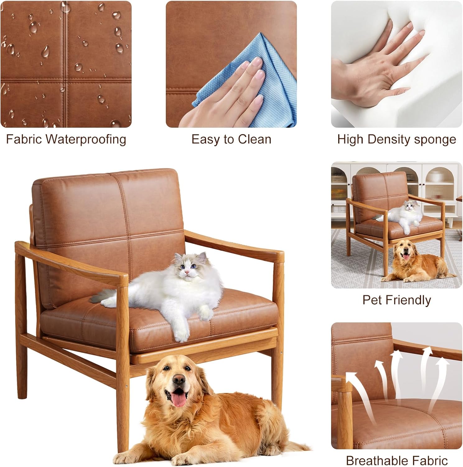 - ăSturdy Luxurious Seating OptionăThis living room chairs boasts a solid wood frame, paired with soft faux leather upholstery, durable foam padding, and heavy-duty springsâdelivering exceptional support and long-lasting comfort. It arrives in vacuum packaging and bounces back to its original shape instantly once unpacked, with no sagging or flattening over time. Perfect as a reading chair for adults or a bedroom chair, itâs ideal for any cozy corner.