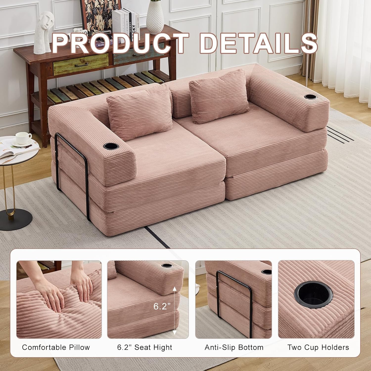 - 【No Assembly Required】Skip the hassle of installation. Our foldable modular compressed sofa arrives vacuum-packed. Upon unpacking, allow the sofa bed to breathe for 48 hours to regain its original shape and size