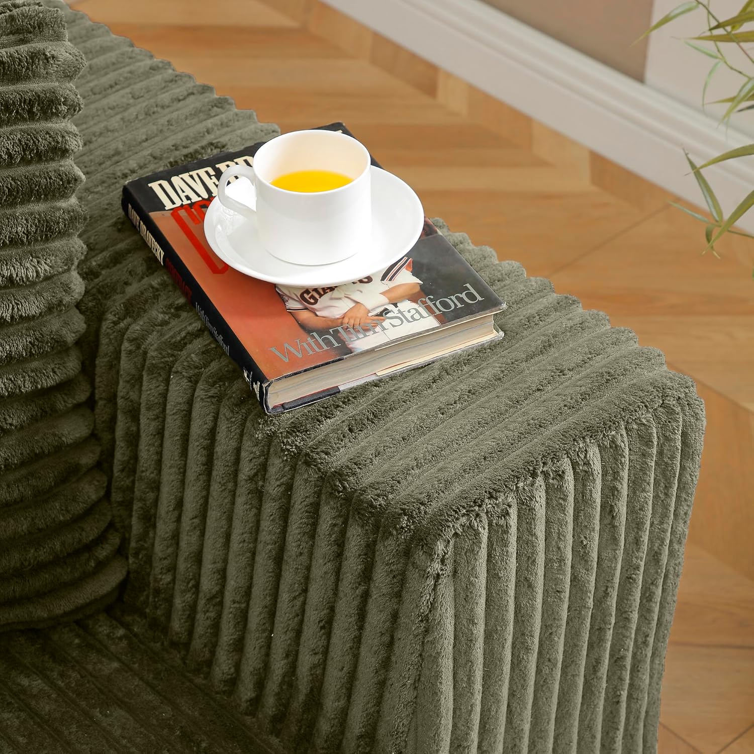 Modular Sectional Sofa Cloud Sectional Couch, 135" Comfy Fluffy L Shaped Olive Green Couches for Living Room, Deep Seat Memory Foam Plush Corduroy Boneless Couch Sectionals Left Facing Chaise Sofa