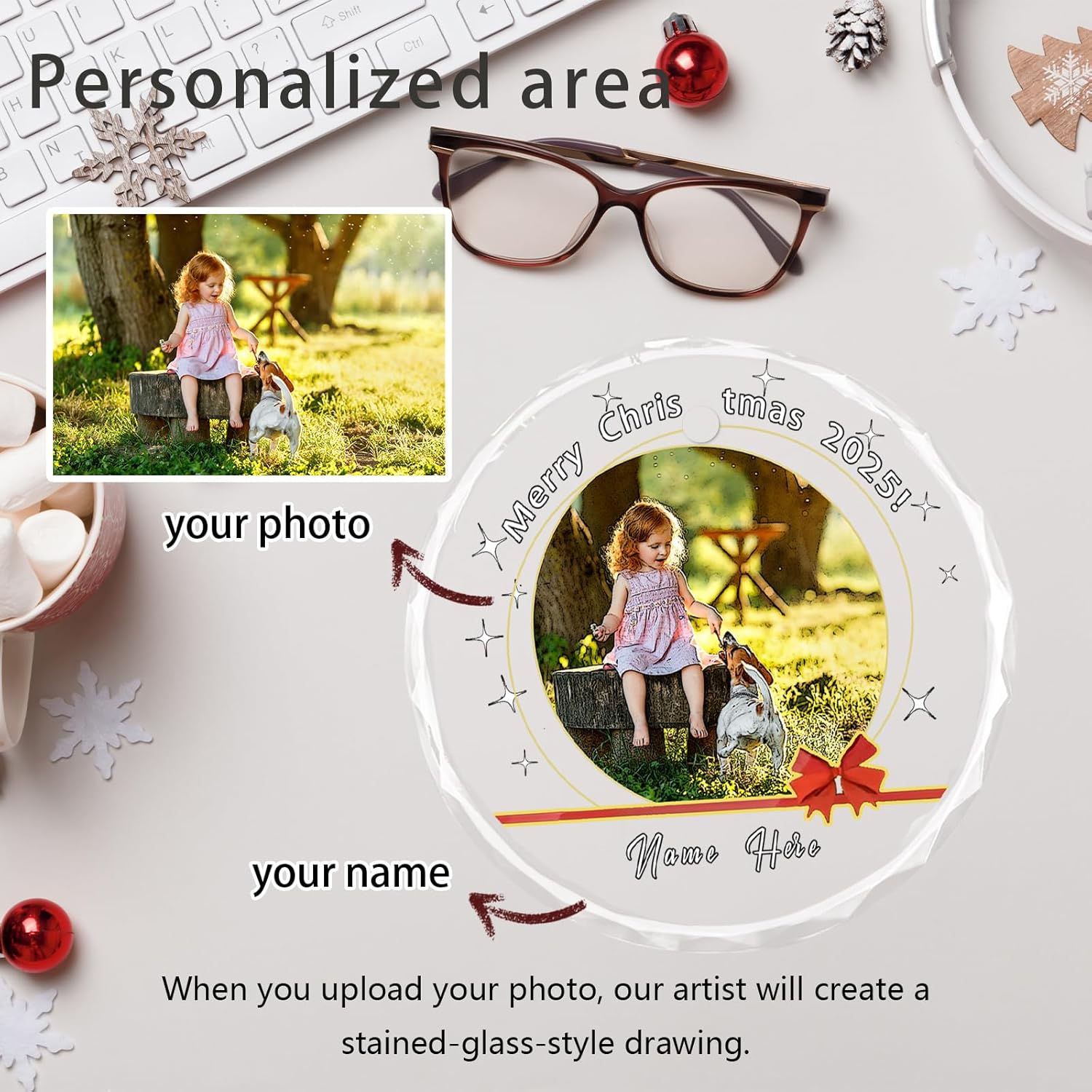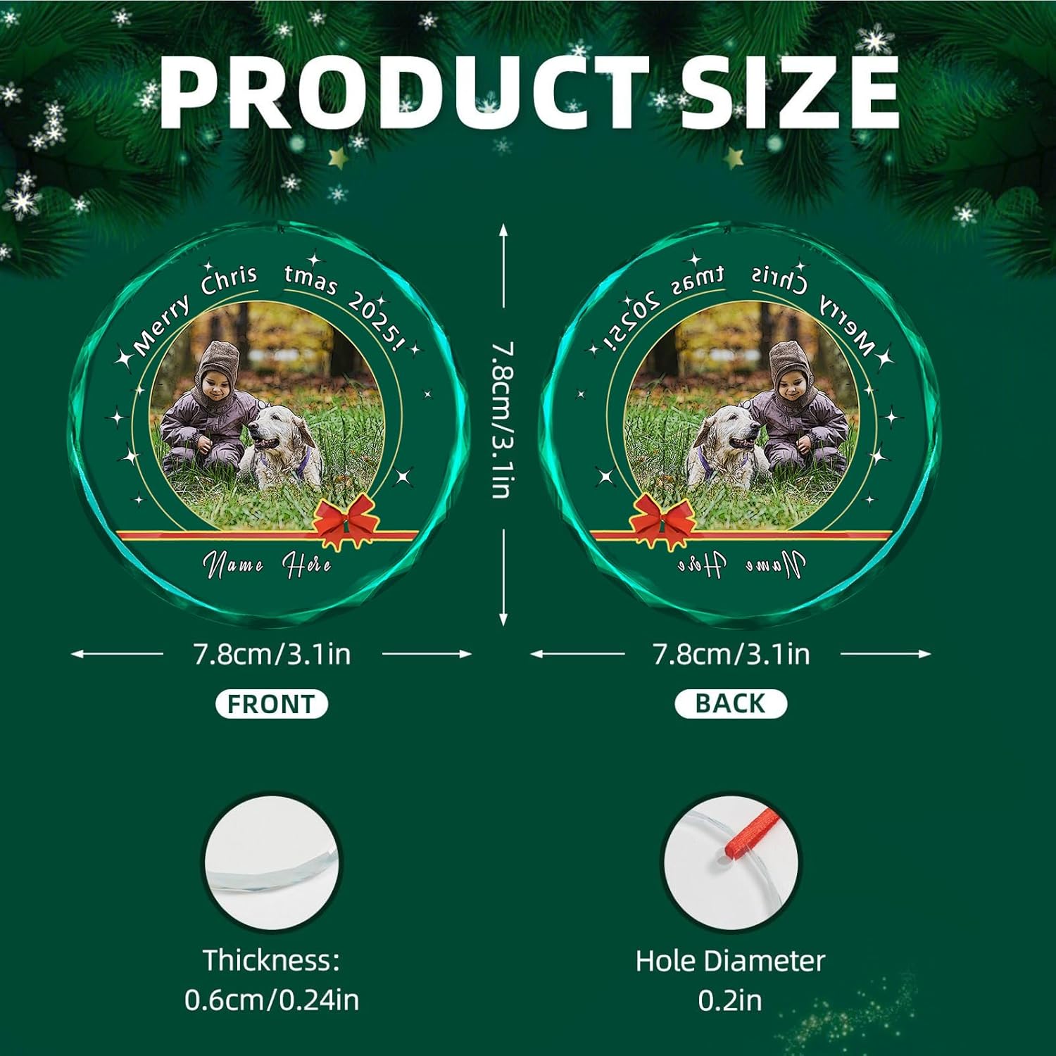 - High-Quality Personalized Christmas Ornaments --- Crafted from premium glass, these ornaments feature a smooth, glossy finish and a durable structure. They are resistant to cracking and designed to last for years. The elegant design enhances texture while preventing fading or peeling.