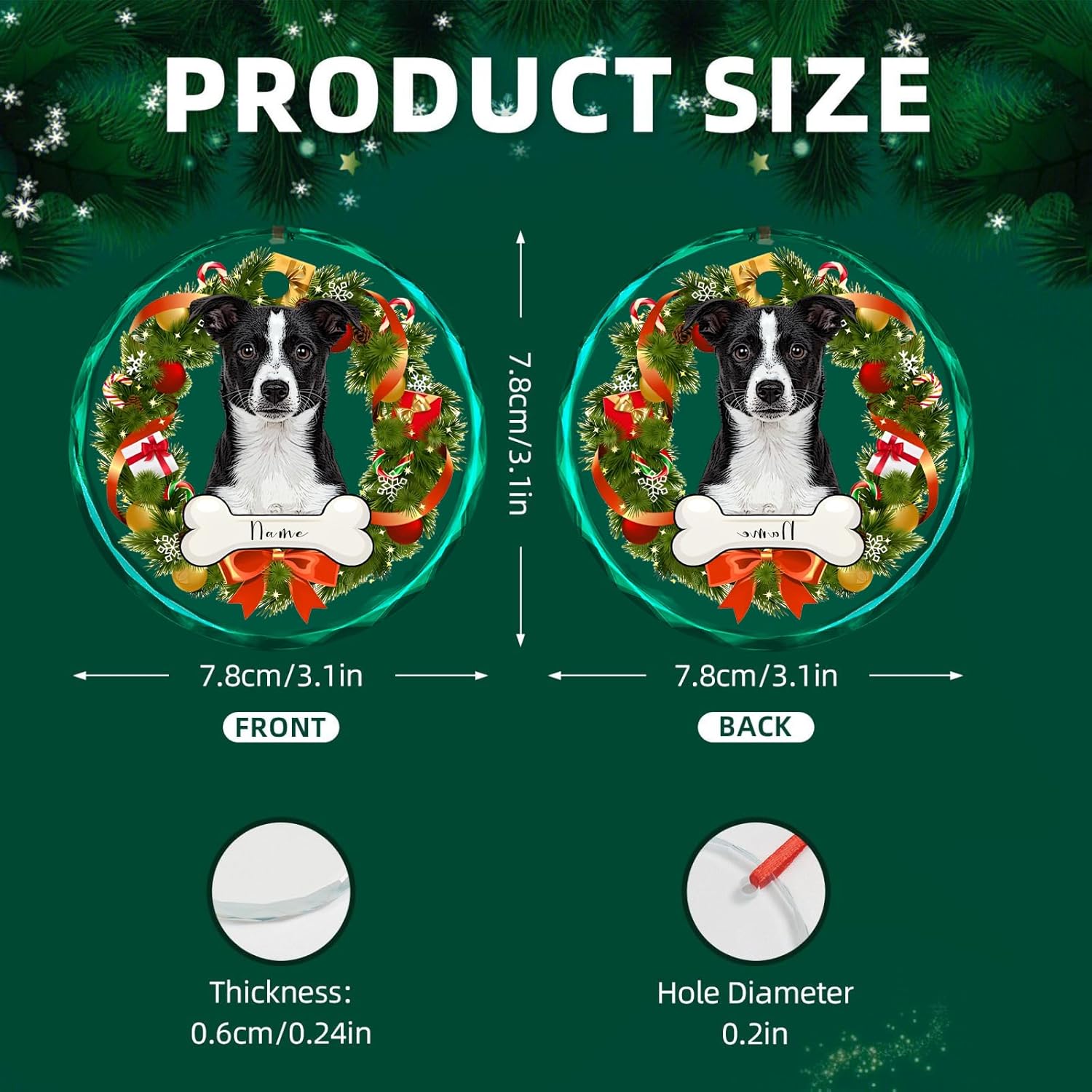 Personalized Christmas Ornaments, Custom Glass Ornament with Photo,Customized Christmas Tree Decor Gifts for Pet, Wreath Bone