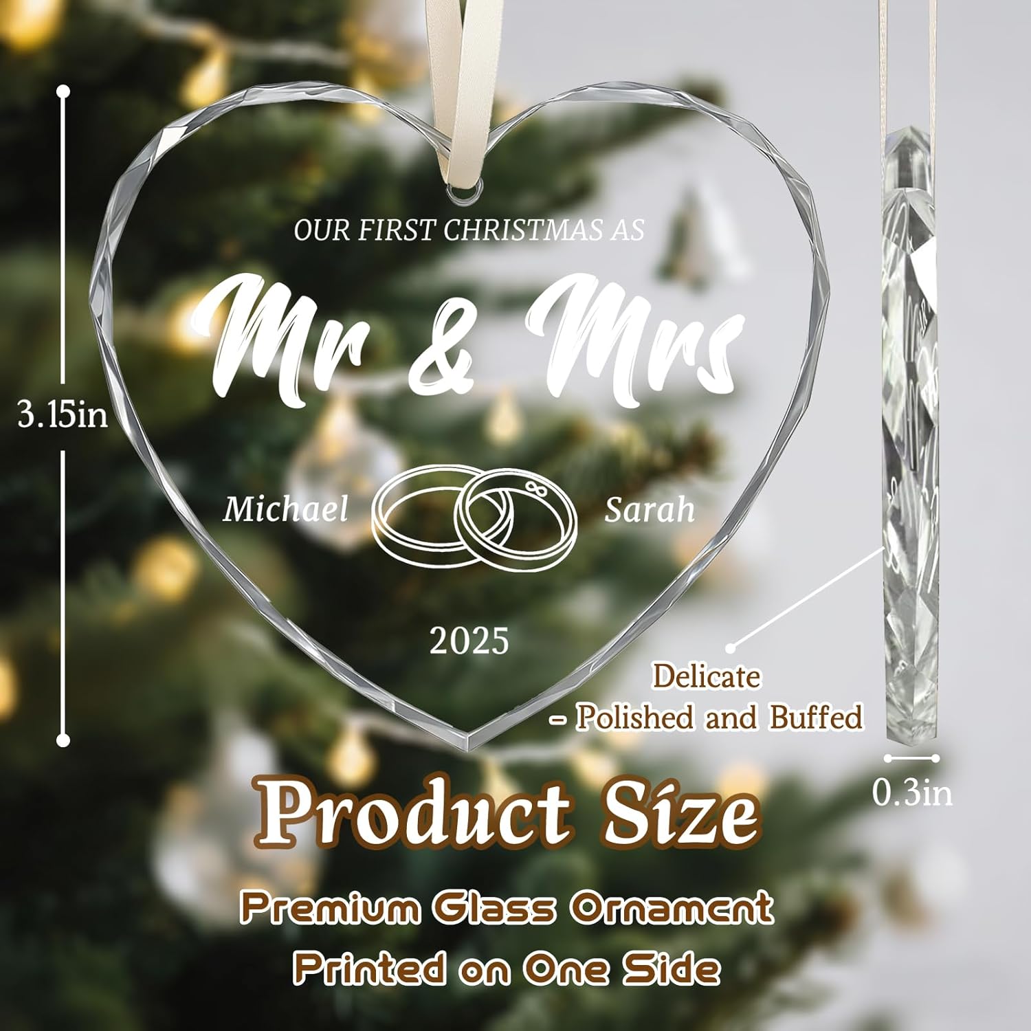- Multi-scenario Applications: We offer a variety of exquisite designs tailored for newlyweds, including mr and mrs sign, just married decorations, and romantic anniversary editions to suit diverse preferences and occasions. Select the perfect design for your dearest friends, transforming this ornament into a unique vessel for your personalized, heartfelt wishes—a truly meaningful wedding gift for newlyweds. The personalized wedding shower glass ornament doubles as festive decor for Christmas trees, everyday accents for windowsills or doorways, or as a standout piece for wedding venues and bridal showers, effortlessly enhancing any setting