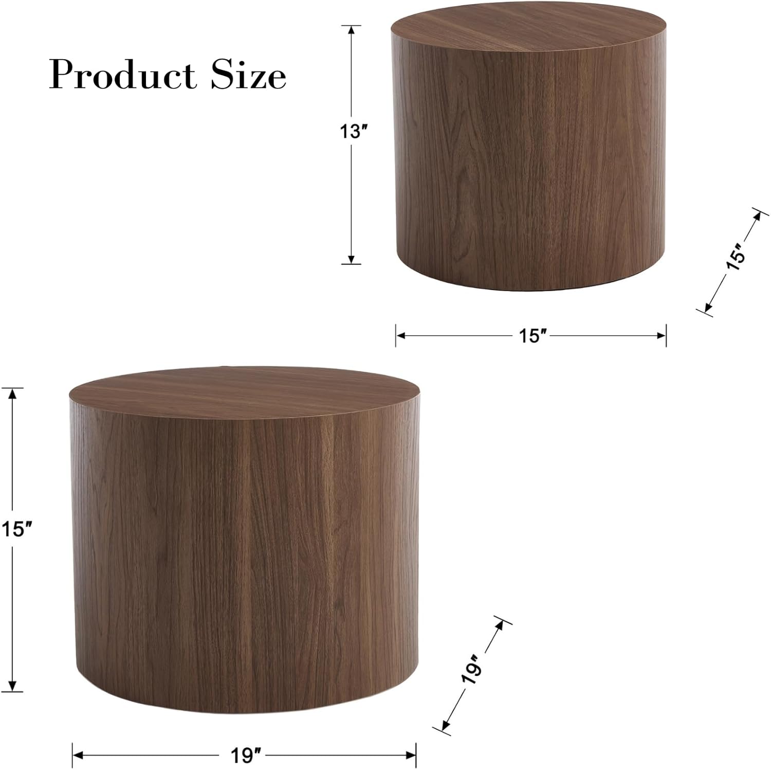 Round Coffee Tables Side Table Set of 2, Wood Nesting End Table for Living Room Balcony Office, Walnut Wooden Color, No Assembling