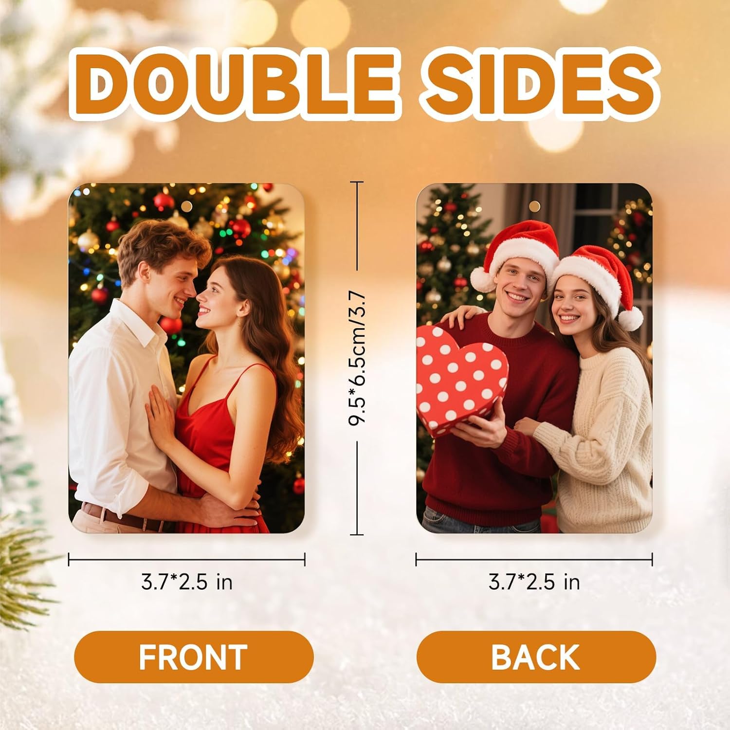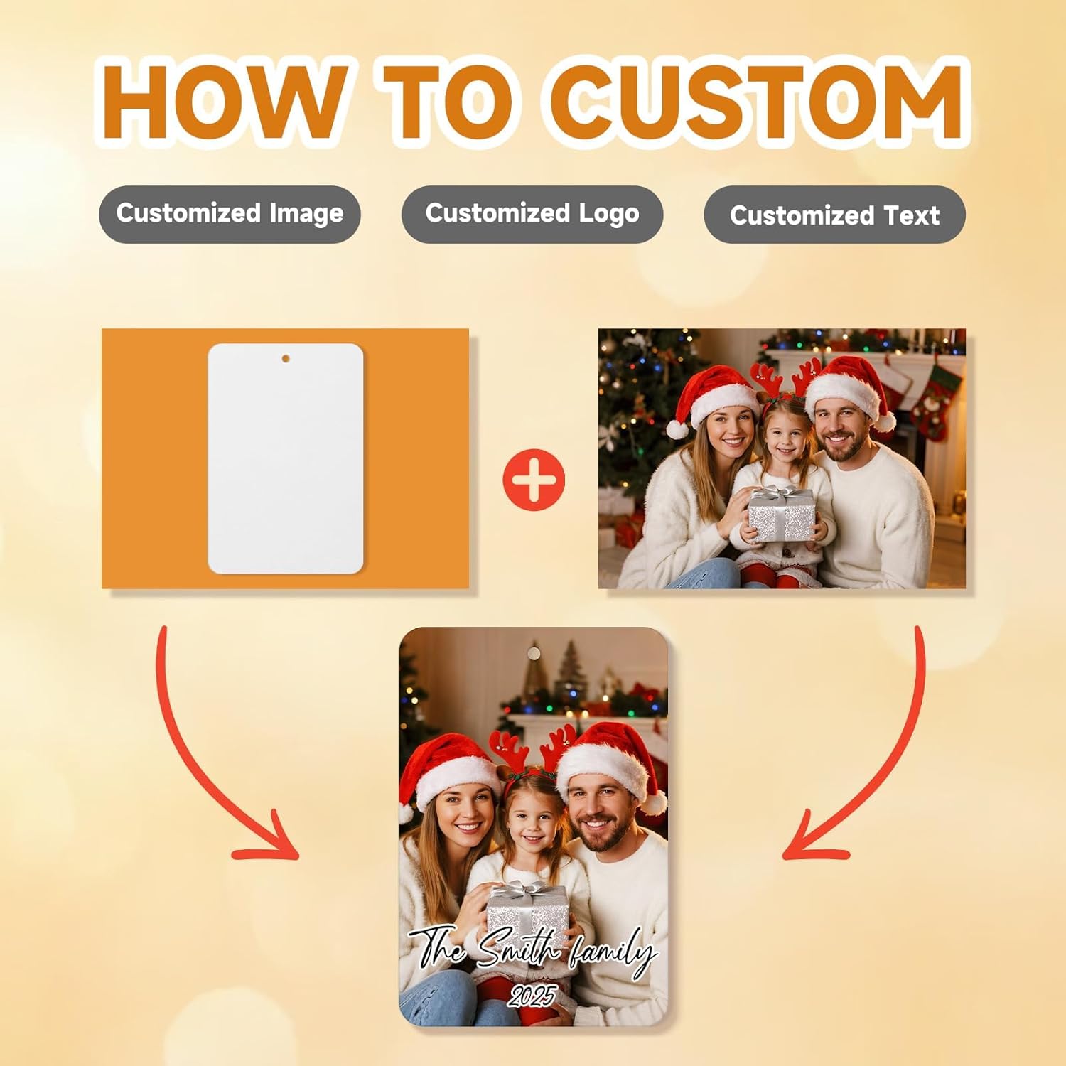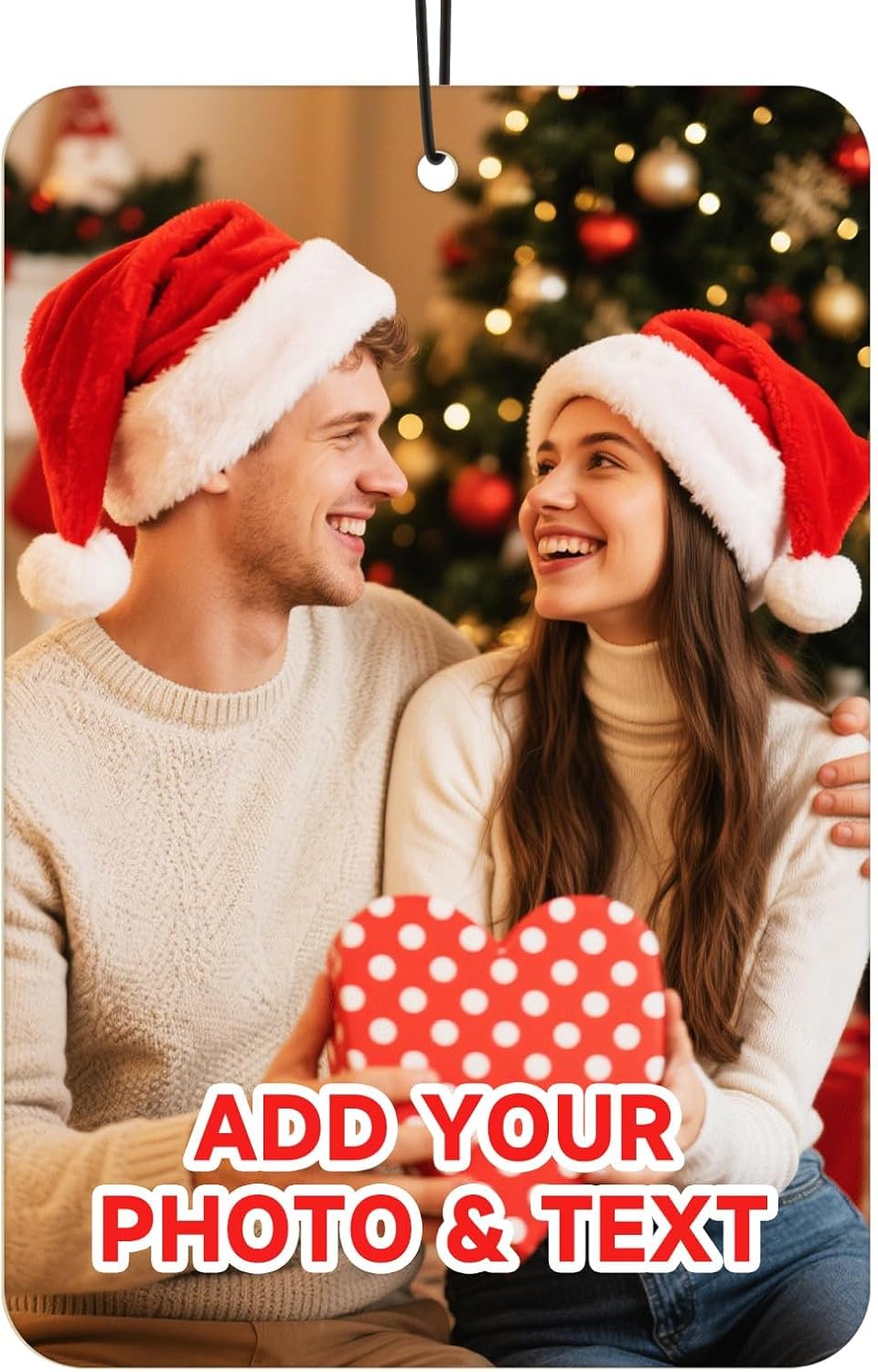 • 【CUSTOM AIR FRESHENERS WITH PICTURE】Custom Christmas custom air fresheners with picture not only makes the Christmas tree charming and delightful, it is a special gifts for family, baby's first Christmas, Thanksgiving, New Years, birthdays, weddings and engagements, Christmas Picture Ornament make them feel warm and intimate
