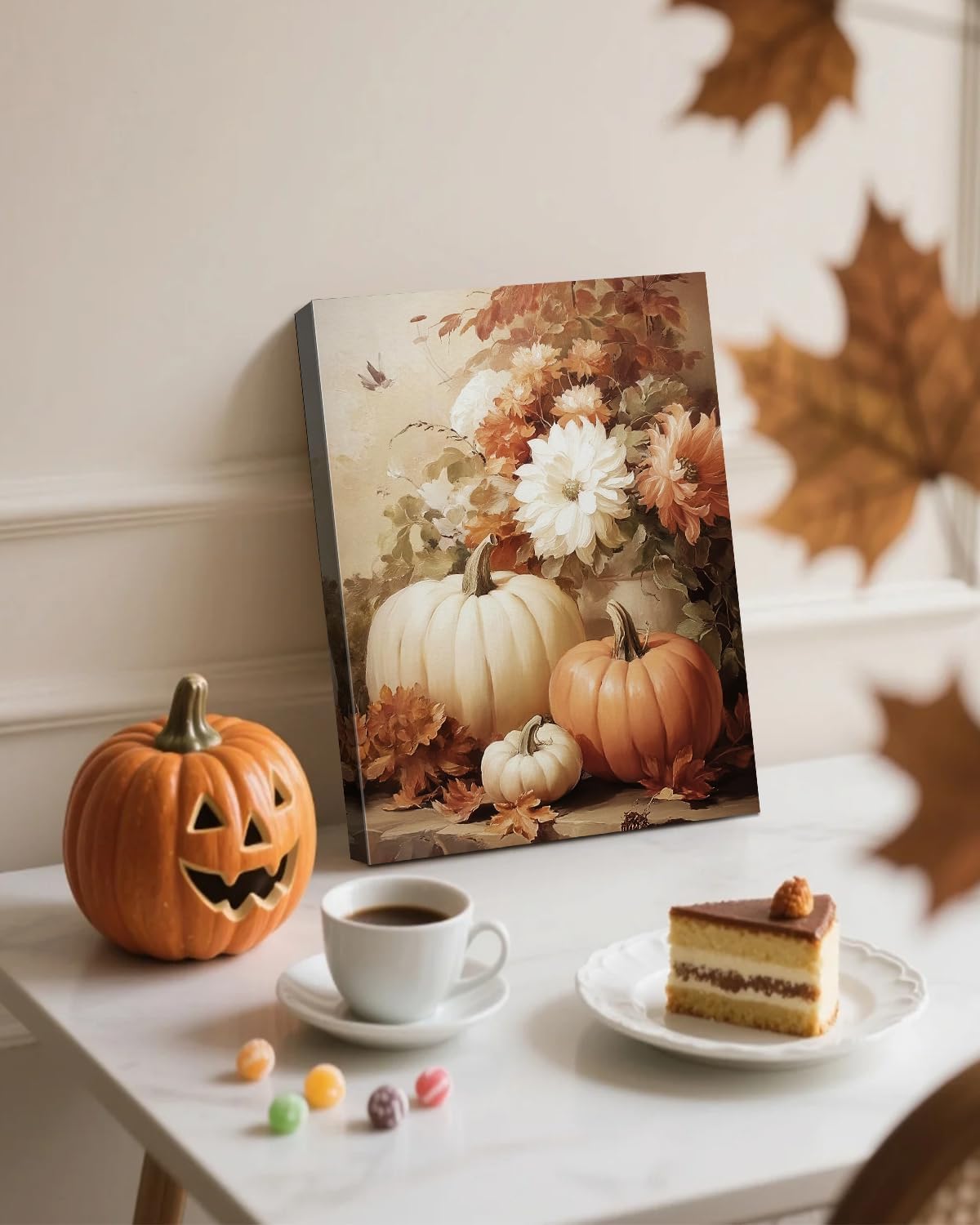 - 【Versatile Seasonal Decor】 : Whether for fall decorations,Halloween parties,thanksgiving decorations, or everyday home charm, this artwork fits seamlessly in living rooms, bedrooms, or entryways